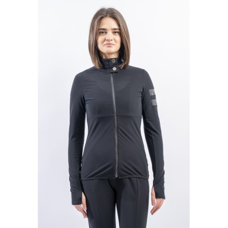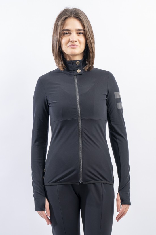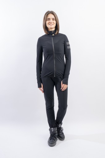 Sottotuta full zip realizzato in pile tecnico elasticizzato Econyl, ottenuto dal filato di nylon rigenerato. Caratterizzato dalle grafiche distintive del marchio e dai bottoni a pressione brandizzati presenti su collo e fianchi. Traspirante e caldo, internamente è foderato in morbido pile. Ideale per praticare sport all'aperto o come strato aggiuntivo sotto la giacca.