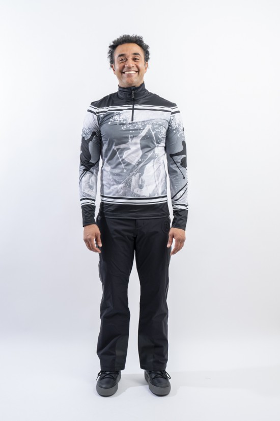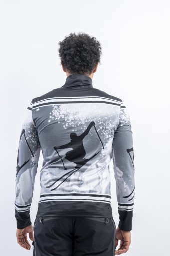 Il sottotuta Verti di Bogner è realizzato in tessuto esterno elasticizzato e micro felpato. Caratterizzato dall'esclusiva stampa dal gusto retrò in contrasto di colore. Caldo e traspirante è ideale sotto la giacca da sci e per ogni sport all'aperto.
