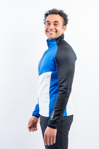 Sottotuta full zip realizzato in tessuto tecnico traspirante. L'interno è felpato per restituire una piacevole sensazione di calore e comfort. L'elasticità del tessuto facilita il movimento. Versatile è ideale sotto la giacca da sci o come complemento per ogni attività sportiva.