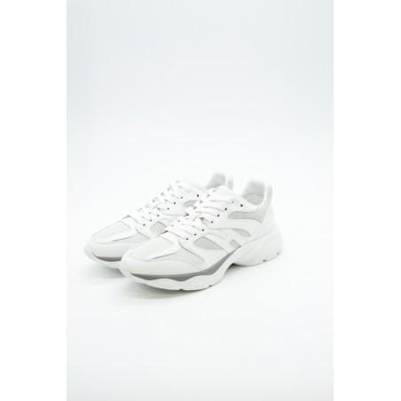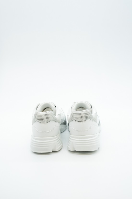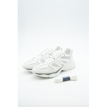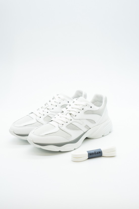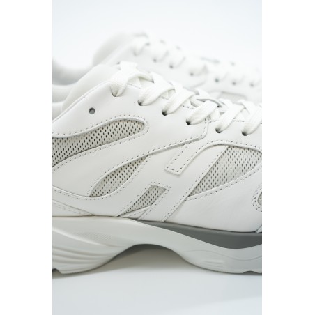 La sneaker da uomo Hogan H665 è caratterizzata da forme fluide e scattanti. La tomaia in morbida pelle, presenta fori ed inserti puzonati per rendere la scarpa ancora più leggera. Sui lati l'iconica H allungata in pelle che gira intorno al tallone. La suola rigata bicolor in EVA extralight e il fussbett in memory foam rendono questo modello ancora più confortevole e flessibile.