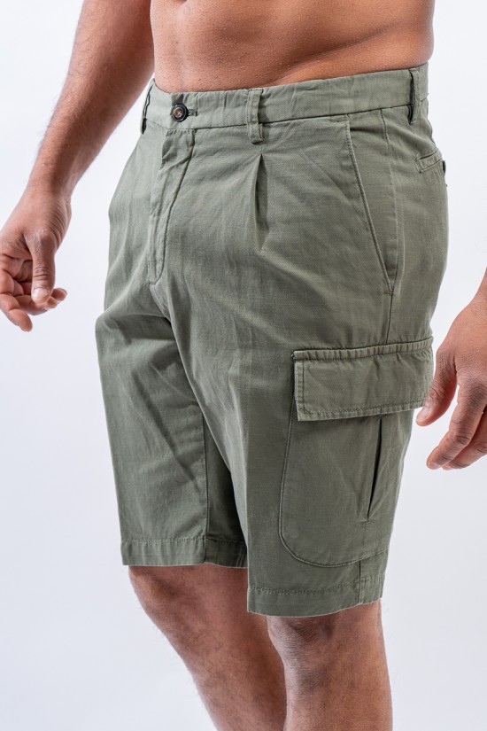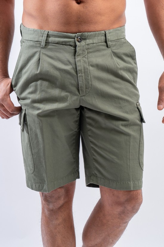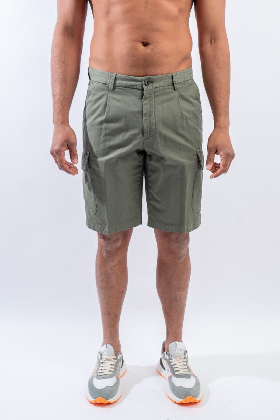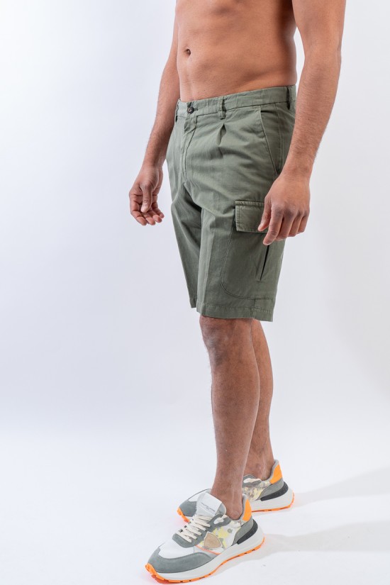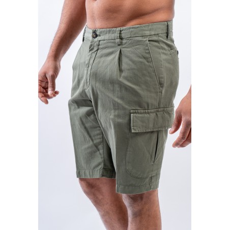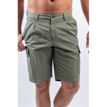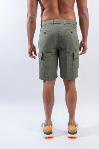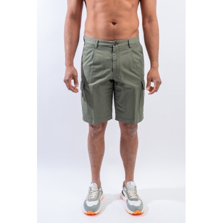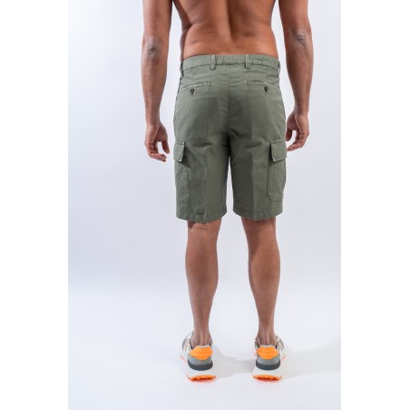 Bermuda cargo firmato Briglia realizzato in misto cotone elasticizzato per donare al capo maggiore libertà di movimento. Presenta tasche laterali a filetto sul davanti e doppie tasche posteriori chiuse da bottoni. Impreziosito dalla vita elasticizzata con coulisse e dalle pratiche e capienti tasche laterali applicate e chiuse da patta e bottoni. Sportivo ma con stile...