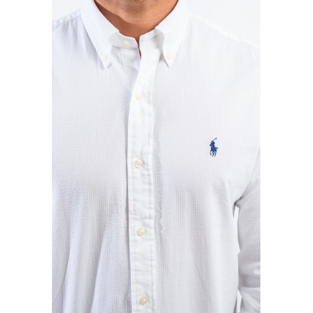 Comoda e leggera si presenta la camicia firmata Polo Ralph Lauren, realizzata in morbidissimo cotone. Caratterizzata dalla chiusura con bottoni a vista, collo button down e carré posteriore diviso con pieghe a cannoncino. Impreziosita dall'iconico pony ricamato a rilievo sul petto e dal motivo a righe verticali all over. Vestibilità costum fit.