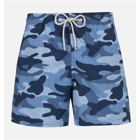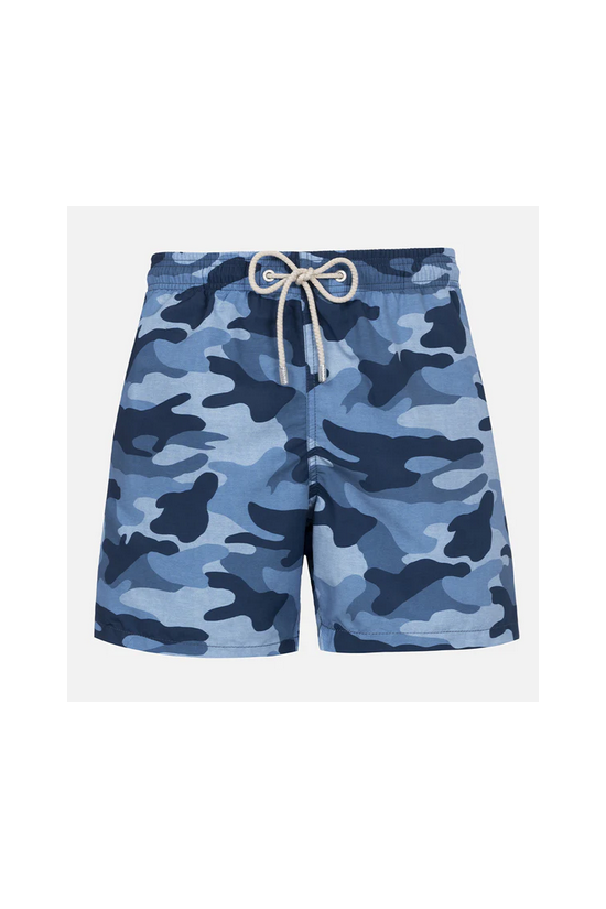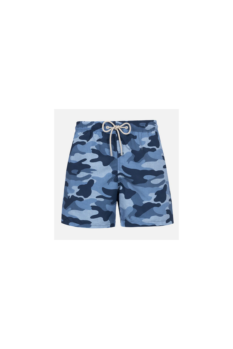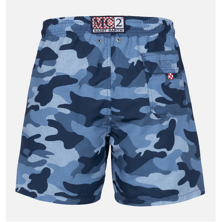 Costume shorts mare MC2 SAINT BARTH in morbido tessuto effetto pesca con stampa mimetica all over nei toni del blu. Realizzati con il 100% di materiale riciclato. Pratici e versatili per un'estate senza pensieri!
