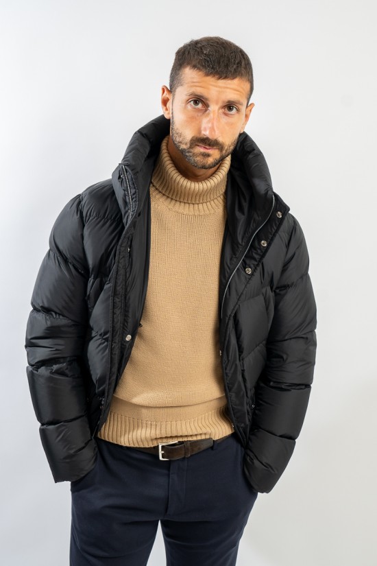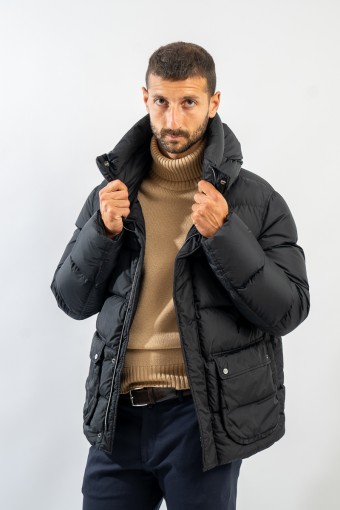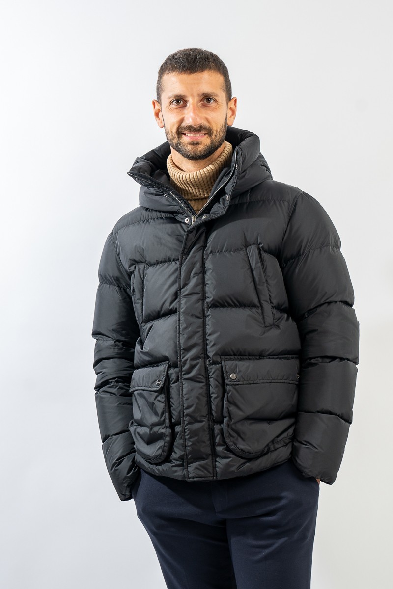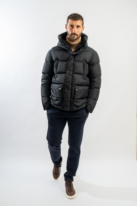 Piumino corto con cappuccio fisso firmato Herno. Realizzato in nylon Chamonix che offre ottime prestazioni tecniche grazie alla tecnologia Polar-Tech che rendendo il capo estremamente caldo, leggero ed idrorepellente. Caratterizzato dalle numerose tasche presenti sul fronte e dalla chiusura centrale con zip a doppia via e bottoni automatici. Perfetto per essere indossato nelle stagioni più fredde.