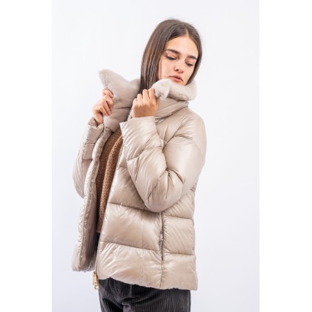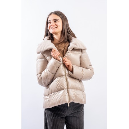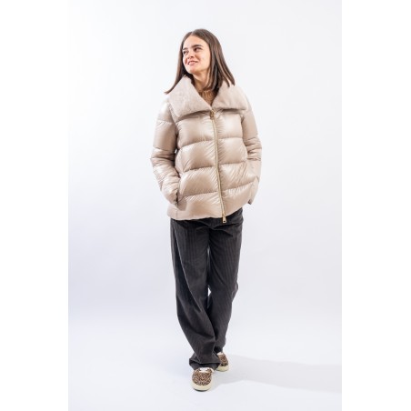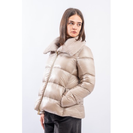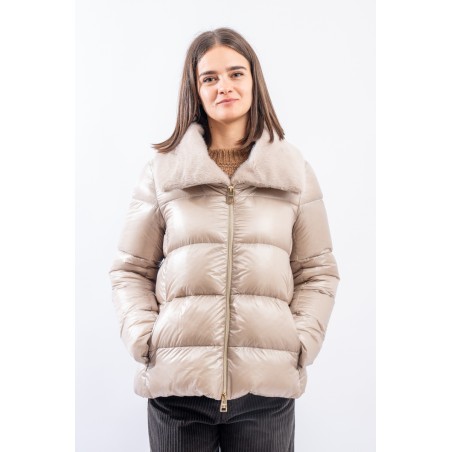 Piumino donna medio Herno realizzato in nylon ultraleggero impreziosito dai dettagli in eco pelliccia a pelo corto sul collo. Nella quotidianità pratico e leggerissimo grazie alla qualità delle piume di prima classe. Adatto ai climi invernali da indossare con disinvoltura in montagna ed in città.