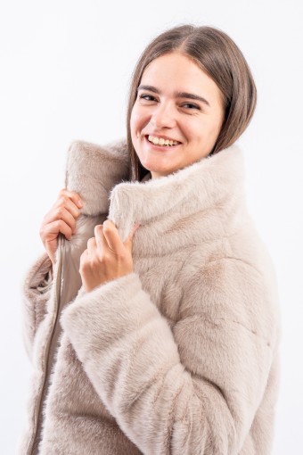 Cappa Herno realizzata in morbida eco pelliccia e imbottita in pregiata piuma d'oca di classe 1. Il dettaglio del collo a cratere dona un tocco pratico e moderno. Design trapuntato e linea essenziale leggermente svasata. Vestibilità regolare. Ricercato e femminile come una pelliccia, caldo e confortevole quanto un piumino!
