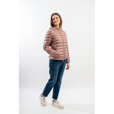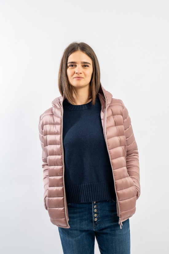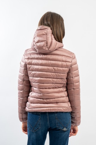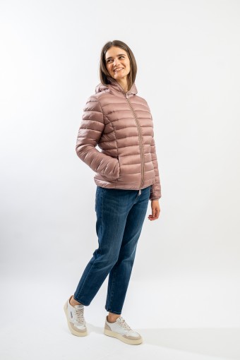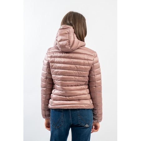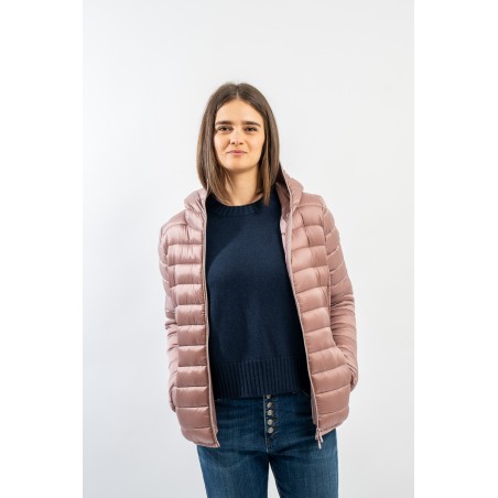 Eco piumino corto slim fit con cappuccio fisso. Il tessuto esterno semi lucido dona lucentezza e ne esalta i colori. L'imbottitura in plumtech, piuma sintetica riciclata, è un'ottima alternativa al vero piumino e garantisce un perfetto isolamento termico. Sottile ma allo stesso tempo resistente, garantisce protezione dall'acqua e dall'aria. La chiusura centrale con zip dorata e doppio cursore. Il logo gommato tono su tono applicato sulla manica e doppie tasche laterali con chiusura a zip invisibili.