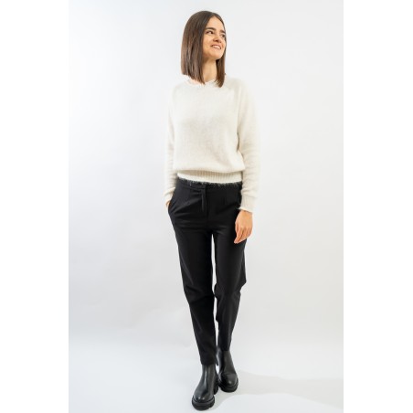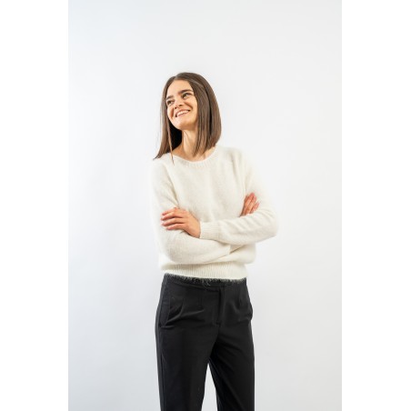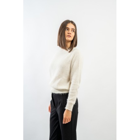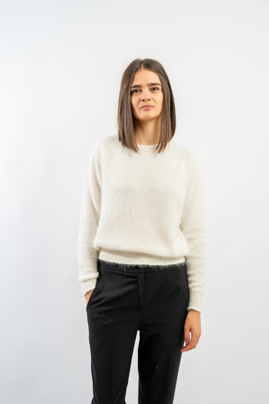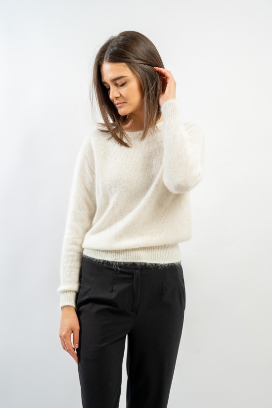 Maglia girocollo con manica lunga realizzata in morbida angora estremamente soffice e calda. Collo, polsini e fondo maglia a costine. E' un prodotto Made in Italy con una sofisticata tecnica di tintura artigianale che non altera la morbidezza del capo ma ne esalta i colori. Le linee essenziali rendono questo maglioncino girocollo un capo molto versatile da indossare la prossima stagione invernale.