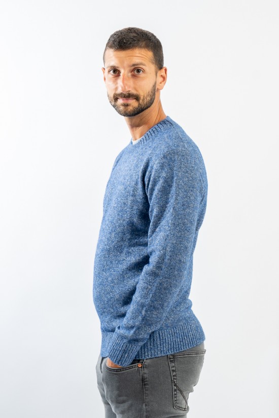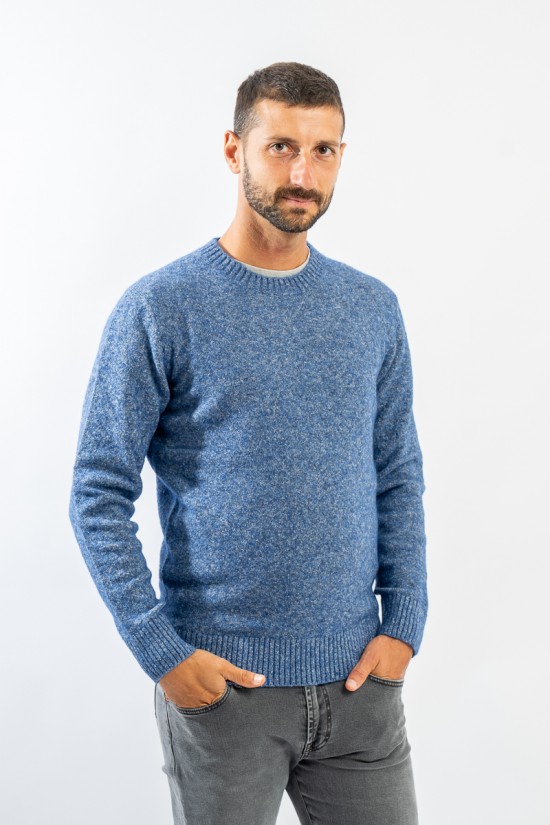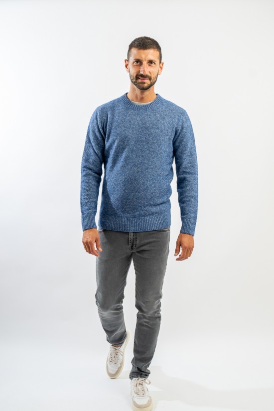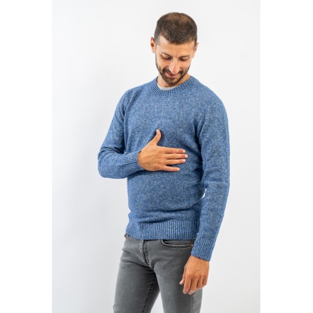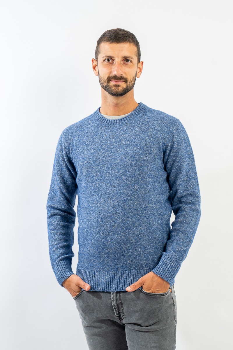 Morbida maglia girocollo firmata Kangra. Realizzata in misto lana e alpaca impreziosita dall'effetto melange. Perfetta per essere indossata nelle stagioni più fredde.