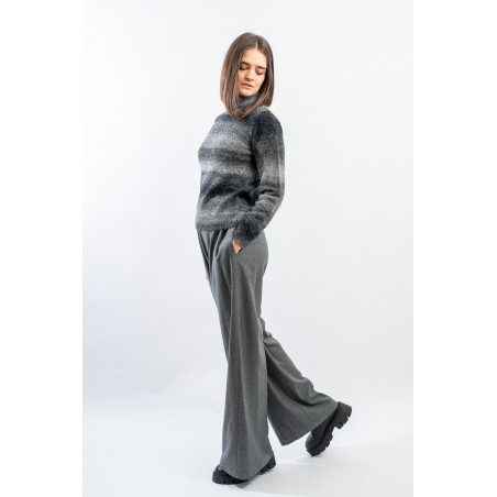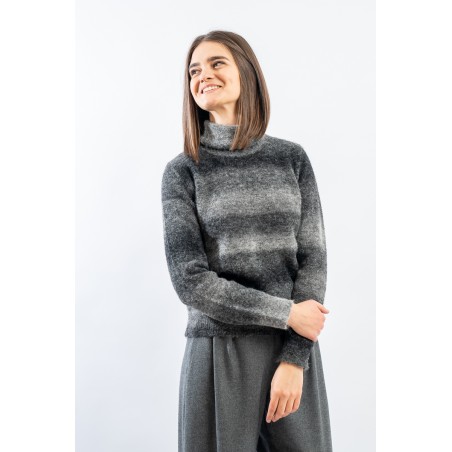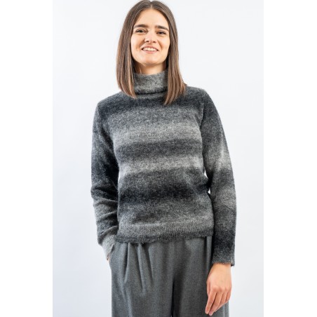 Dolcevita realizzato in pregiato filato misto alpacha. Caratterizzato dalle sfumature effetto stampato e dal collo alto a taglio vivo è morbido caldo e prezioso.