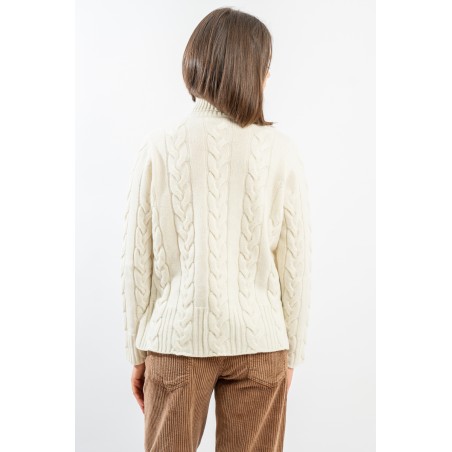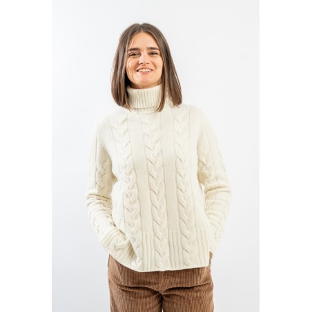 Dolcevita realizzato in pregiato filato di lana e cashmere. Caldo ed avvolgente. Arricchito dalla lavorazione a trecce alternata alle coste e rifinito dagli spacchetti laterali.