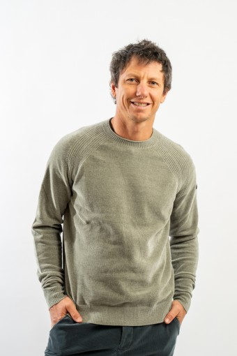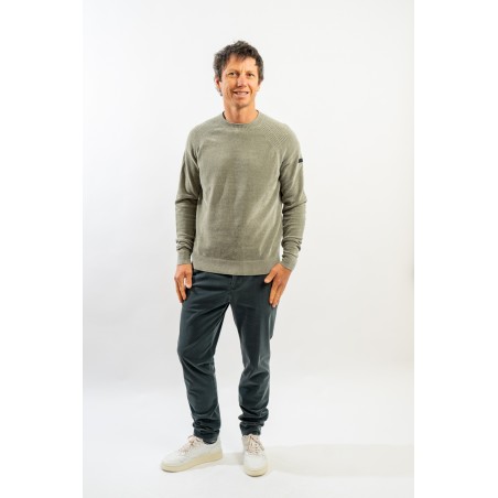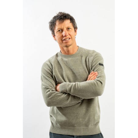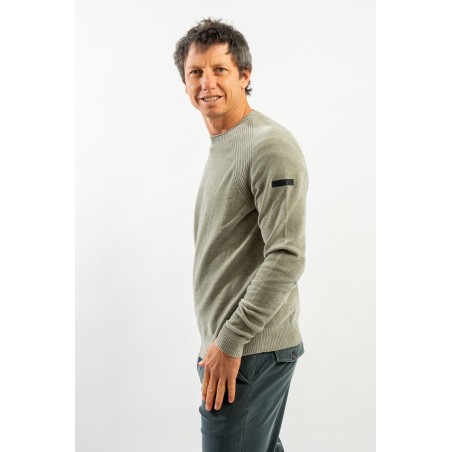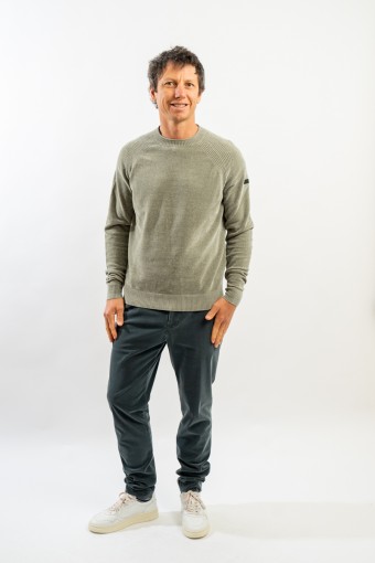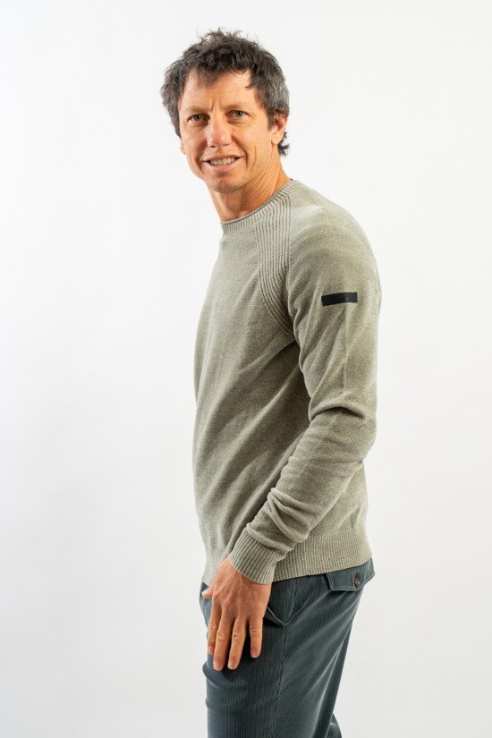 L'innovazione di RRD si afferma anche nella nuova proposta della maglieria. Questa maglia girocollo è realizzata in morbida ciniglia super stretch ed estremamente confortevole. Lo scollo, i polsi e il fondo, sono rifiniti a costine. Il logo iconico gommato è applicato sulla manica.