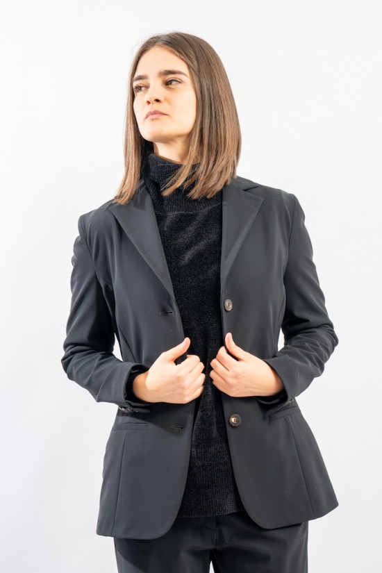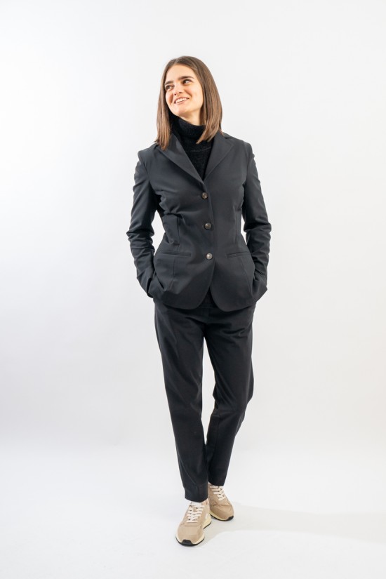Giacca a 3 bottoni di RRD realizzata nell'esclusivo tessuto super matte SURFLEX®, elasticizzato e confortevole. Il fit regolare ed il design linerare ed essenziale valorizzano la figura femminile. L'aggiunta dello spacco posteriore la rendono estremamente pratica assicurando la massima libertà di movimento. La versatilità del materiale e l'eleganza nelle finiture, la rendono perfetta come complemento per ogni look.