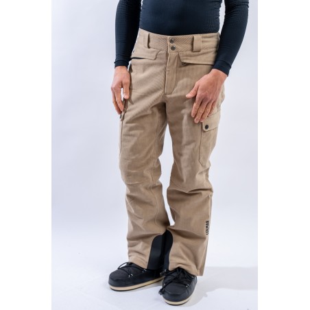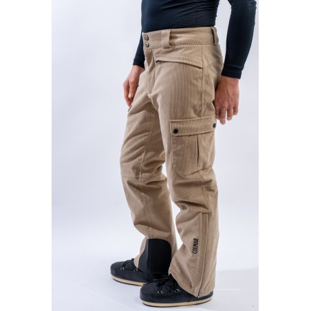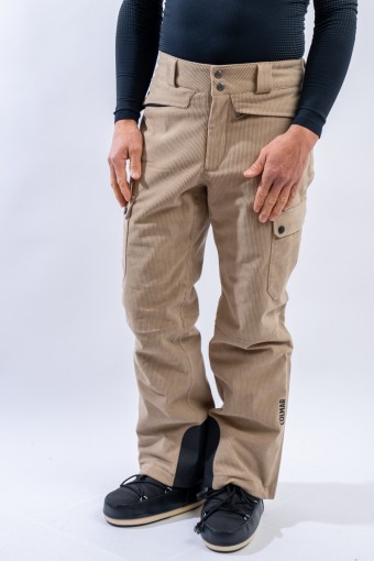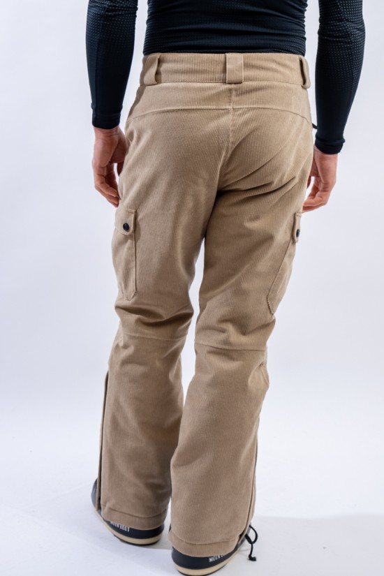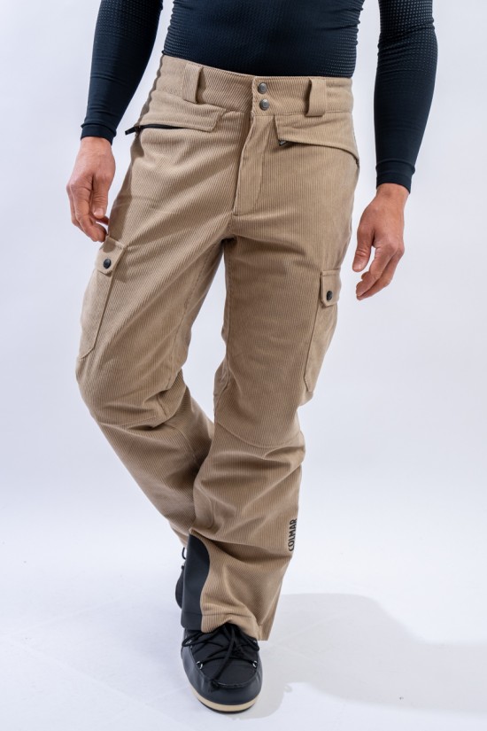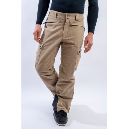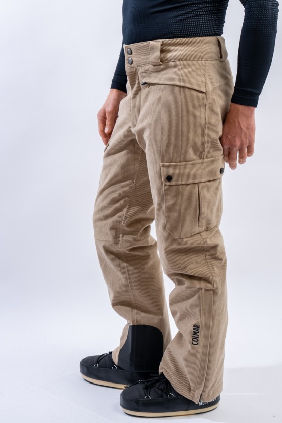 Pantalone sci realizzato con morbido tessuto elasticizzato a coste effetto velluto millerighe. Si caratterizza per la vestibilità comoda e i tasconi applicati sulle cosce. Completo di membrana è impermeabile e traspirante. Imbottito di ovatta tecnica è caldo ed isolante. In vita sono presenti i passsanti per la cintura, a garanzia di una perfetta adattabilità. Pratico è dotato di altre due tasche chiuse da zip sulla parte superiore. Ideale per affrontare con stile ogni avventura sulla neve.