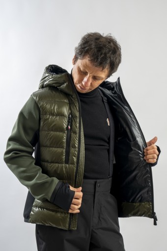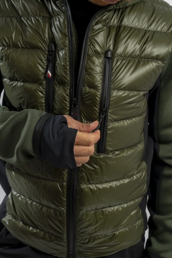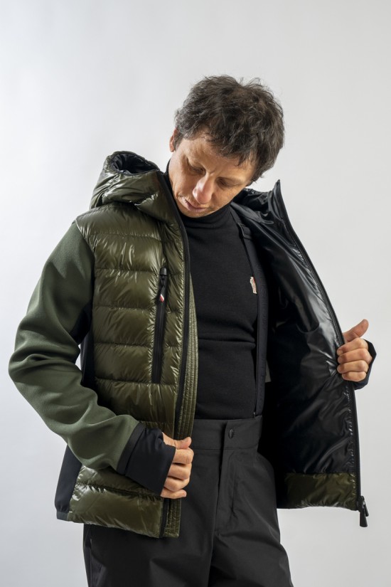 Cardigan full zip imbottito appartenente alla collezione Après-sky di Moncler Grenoble. Realizzato dalla combinazione di materiali innovativi per ottimizzarne la funzionalità e la vestibilità. Il pile Windstopper® lungo i fianchi assicura una maggior protezione all'aria e una miglior mobilità. L'imbottitura in pregiato piumino sulla parte davanti del busto e nel cappuccio dona calore e comfort. Ideale nelle giornate più rigide o come complemento nelle giornate più miti.