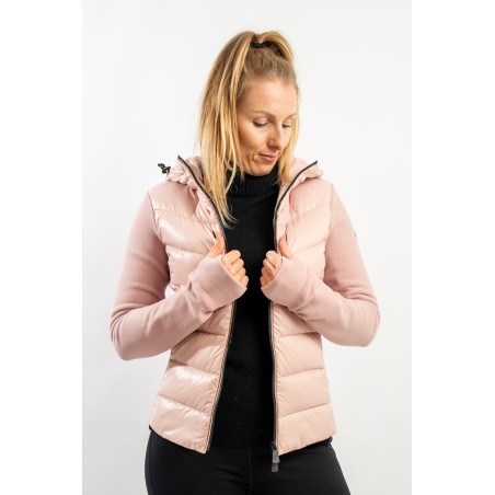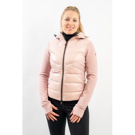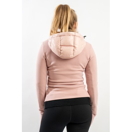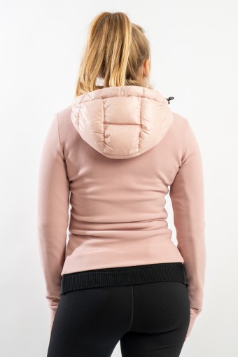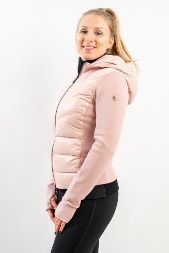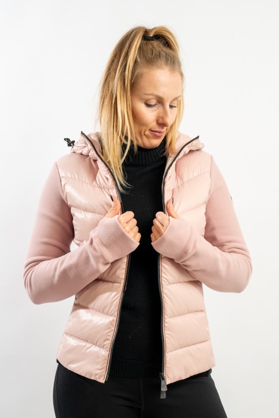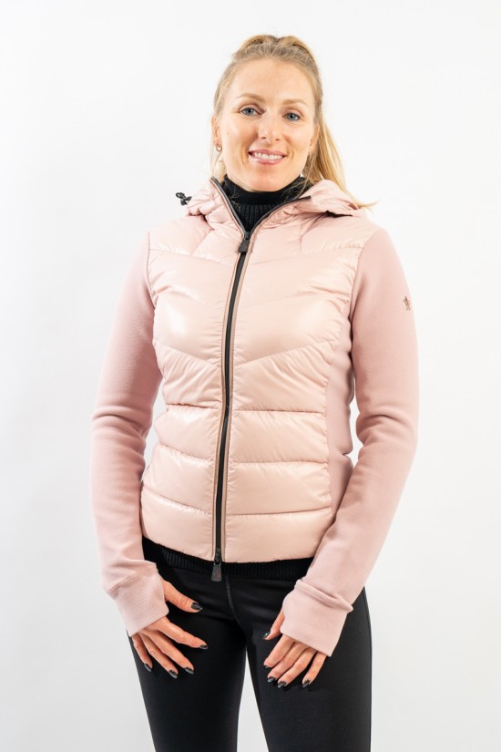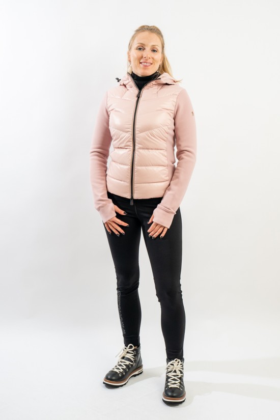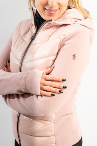 Maglia cardigan realizzata in doppio materiale. In nylon con imbottitura in pregiato piumino sul fronte e in pile stretch rasato su maniche e retro. Trapuntatura esterna in nylon laquè con zip impermeabili e antivento. Cappuccio fisso imbottito regolabile con coulisse. Perfetto da indossare da solo o come secondo strato, saprà aggiungere un tocco di stile ad ogni tuo outfit!