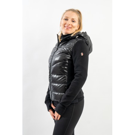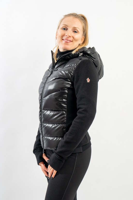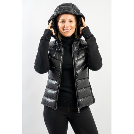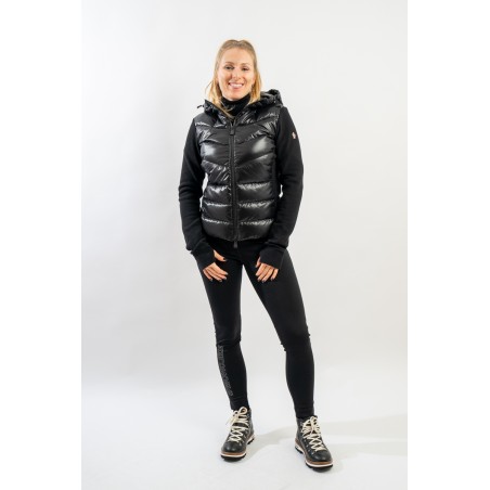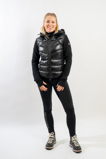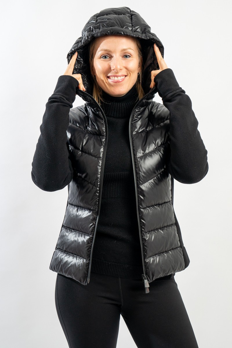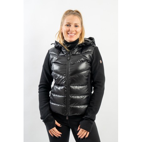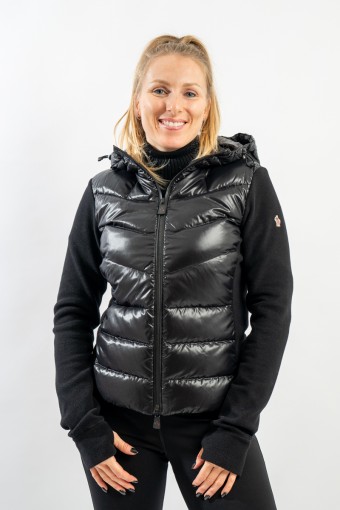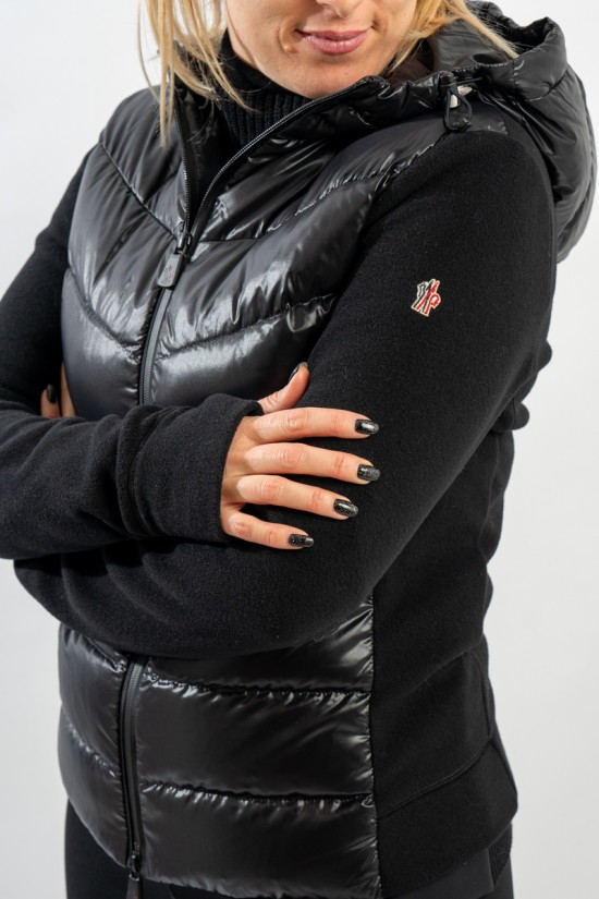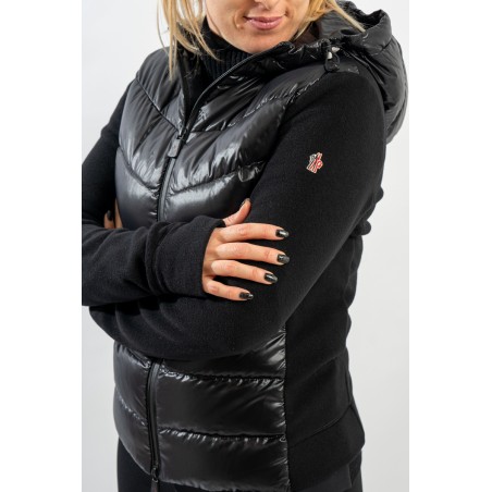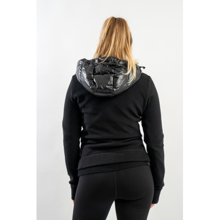 Maglia cardigan realizzata in doppio materiale. In nylon con imbottitura in pregiato piumino sul fronte e in pile stretch rasato su maniche e retro. Trapuntatura esterna in nylon laquè con zip impermeabili e antivento. Cappuccio fisso imbottito regolabile con coulisse. Perfetto da indossare da solo o come secondo strato, saprà aggiungere un tocco di stile ad ogni tuo outfit!