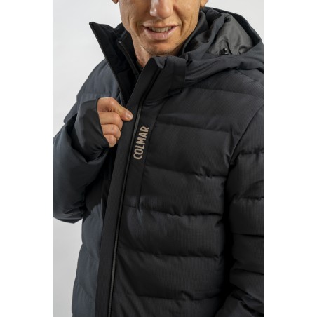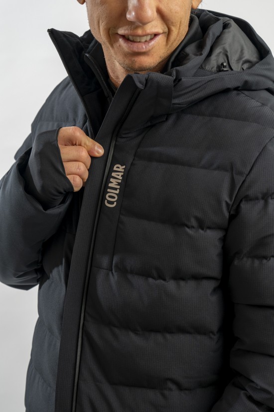 Giacca sci realizzata con una combinazione di materiali funzionali a rendere il capo resistente, pratico e comodo nei movimenti. Il nylon ripstop con trapuntatura a boudine è abbinato alla parte in tessuto softshell stretch liscio. Vestibilità regular ed asciutta. Imbottita in due diverse ovatte tecniche, assicura traspirabilità nei punti necessari e la giusta isolazione. Il cappuccio è avvolgente e stacabile così da poter adattare il capo ad ogni condizione climatica.