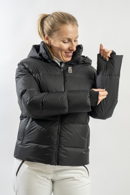 - taschino porta skipass con zip a filo sulla manica sinistra