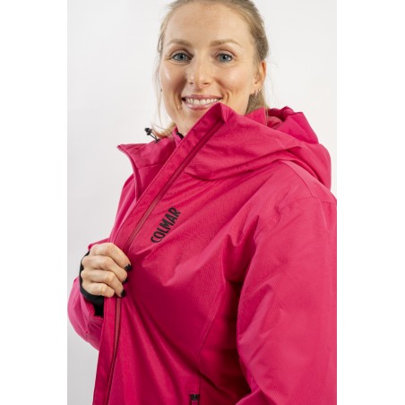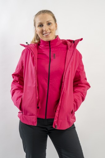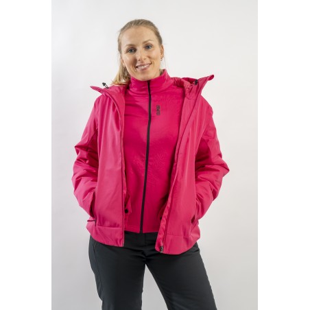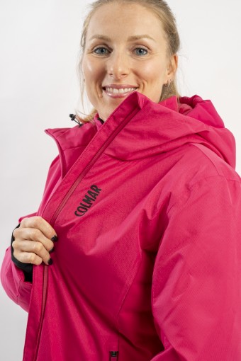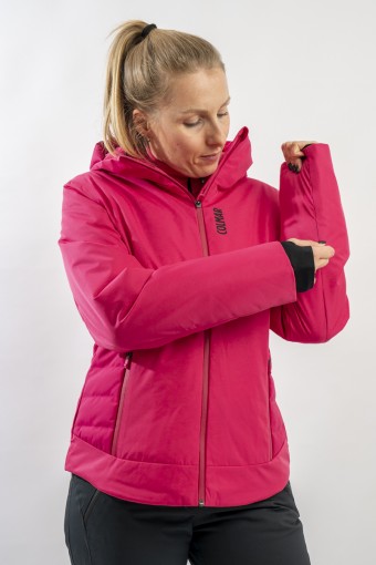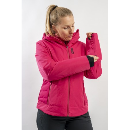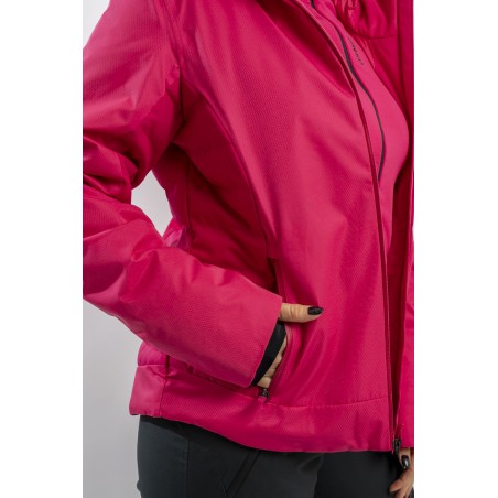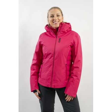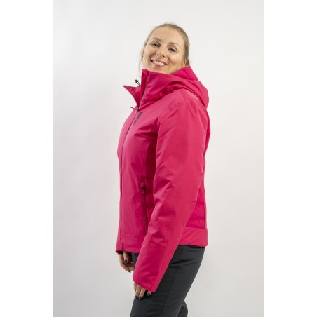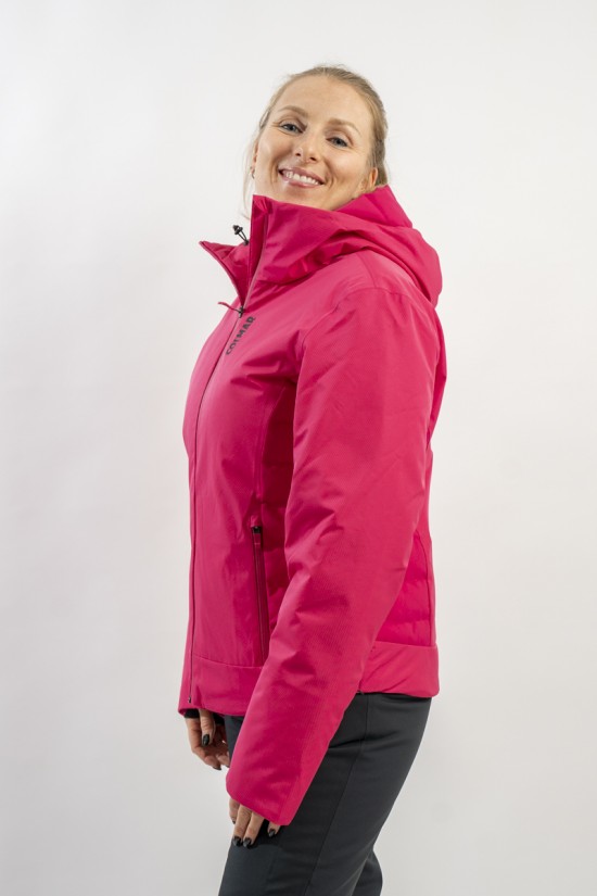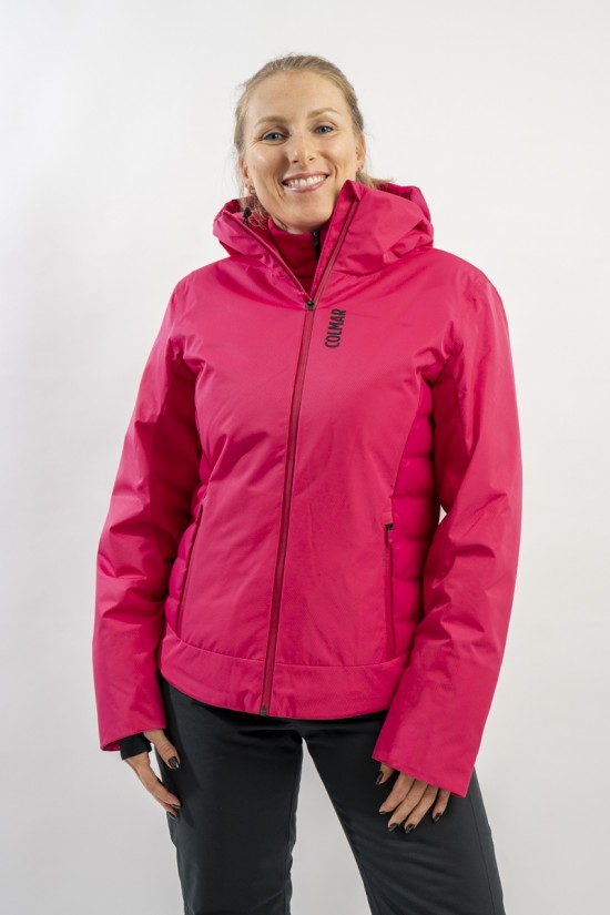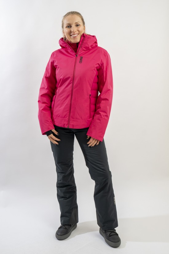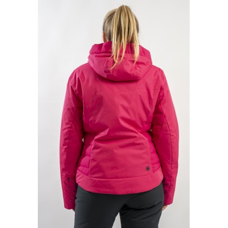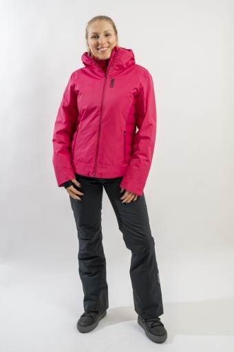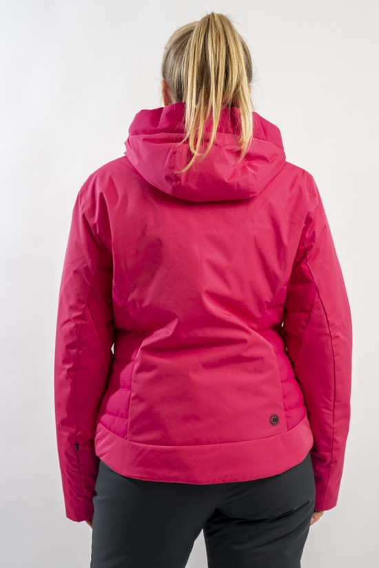 Realizzata in bi-materiale 100% ecofriendly per rispondere al meglio ad esigenze di prestazioni e stile senza trascurare l'importanza del riciclare. Il tessuto esterno, laminato alla membrana, garantisce elevati standard di impermeabilità e traspirazione. La linea, vivacizzata dalla micro armatura semi lucida effetto diamante, impreziosisce il capo. Ai fianchi gli inserti realizzati in tessuto elasticizzato, imbottito in ovatta Microflock Re-paddingcon, assicurano calore e comfort. Ideale per affrontare in completa sicurezza le giornate sugli sci, con stile e femminilità.