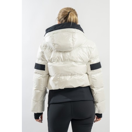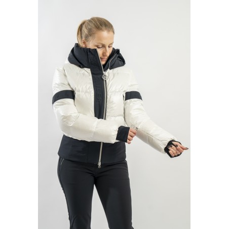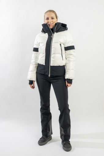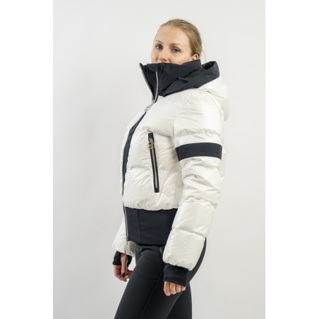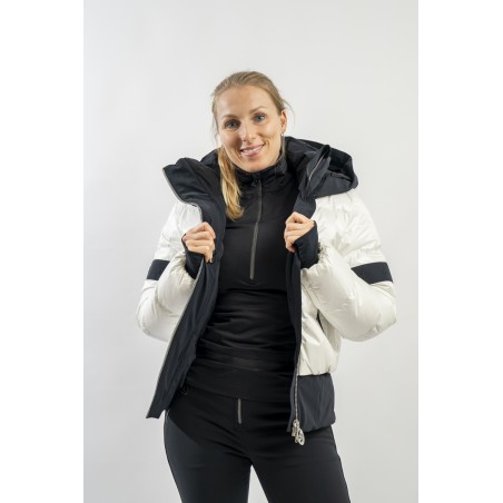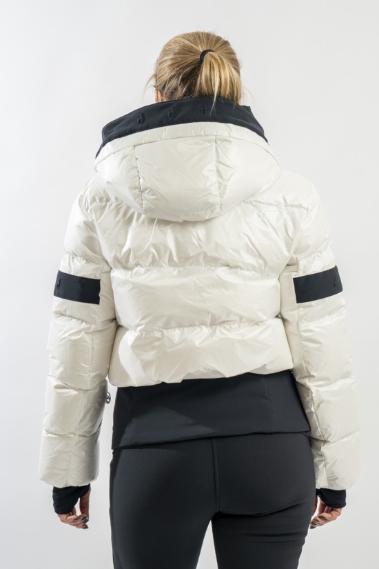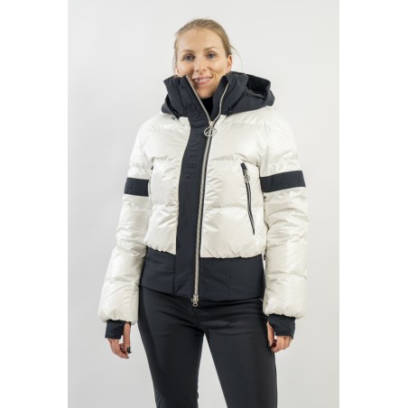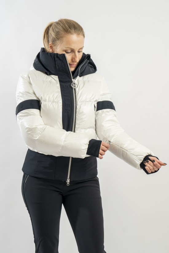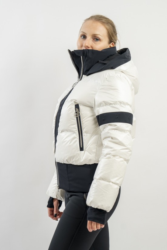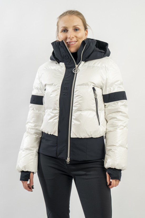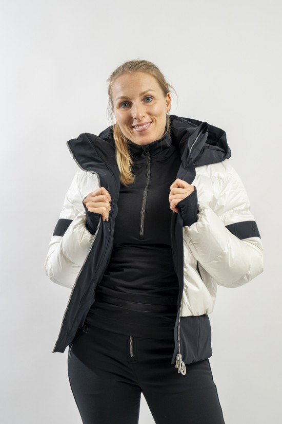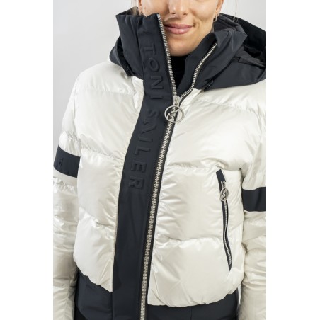 In Loretta, la giacca sci firmata Toni Sailer, materiali funzionali e look moderno si incontrano in un capo ideale per la montagna e la città. Il nylon lucido ripstop ad ampia trapuntatura e le zip metalliche la impreziosiscono. Gli inserti in tessuto elasticizzato con lettering e logo in rilievo le donano carattere e personalità. Imbottita in piumino è estremamente isolante, calda e leggera. Impermeabile e traspirante è dotata di tutti gli optional antivento ed antineve. Perfetta per passare le tue giornate sulla neve in sicurezza e senza rinunciare allo stile.