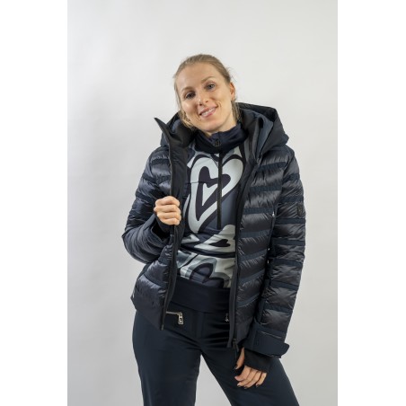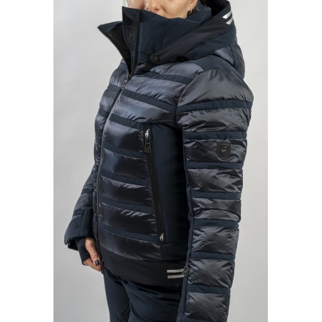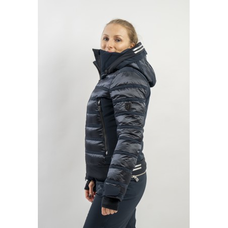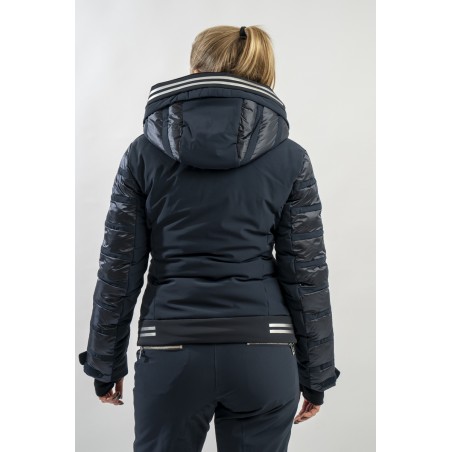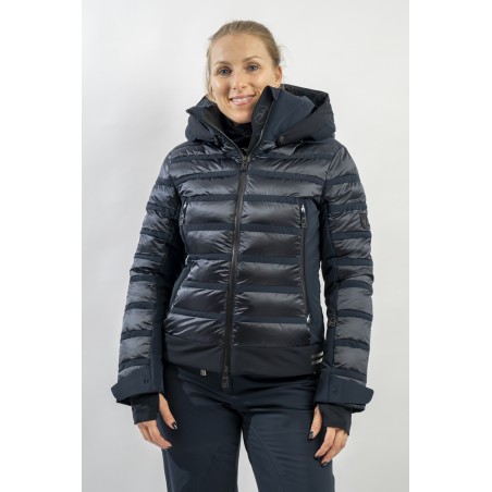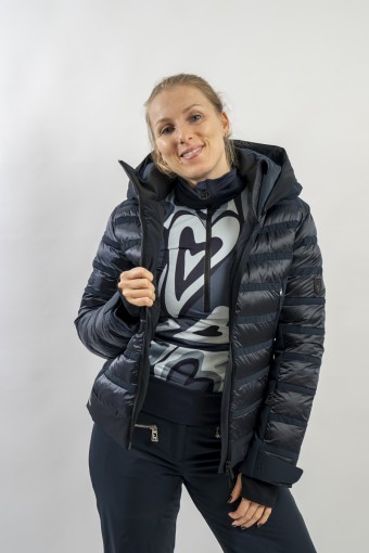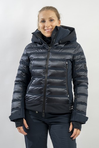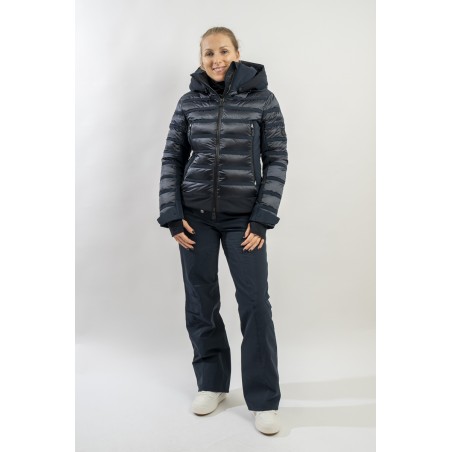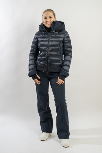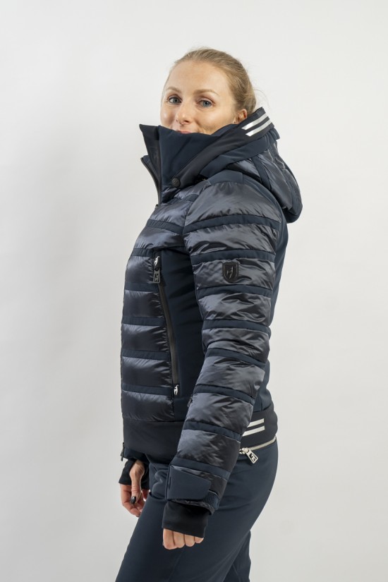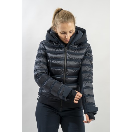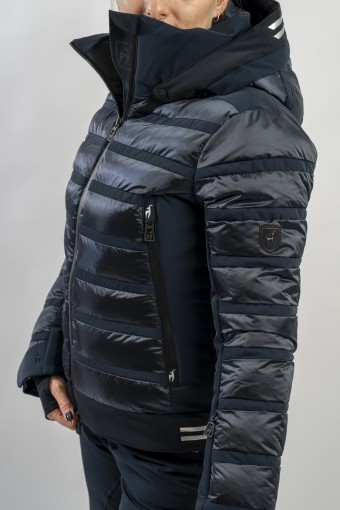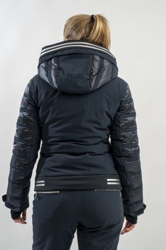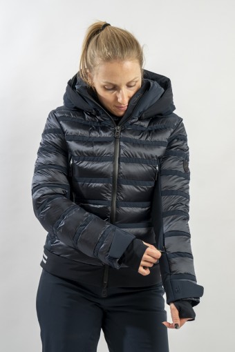 Rubie è l'esclusivo modello firmato Toni Sailer caratterizzato dalla combinazione di due diversi materiali. Il nylon ripstop lucido che dona luminosità al capo rendendolo prezioso e sofisticato. Il tessuto elasticizzato Japanese Premium 4way-stretch che oltre a massimizzare la libertà di movimento dona carattere e grinta al look. Imbottito in ovatta tecnica è traspirante e caldo. Completo di membrana e di trattamento idrorepellente, è altamente impermeabile ed antivento. Soluzioni innovative si fondono con la ricerca di stile per un capo ad alti standar di prestazione e dal design alla moda.