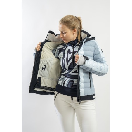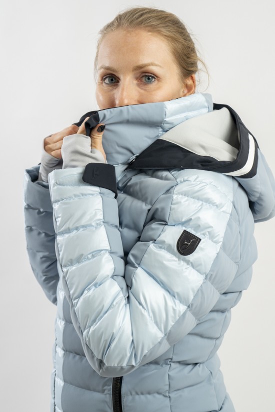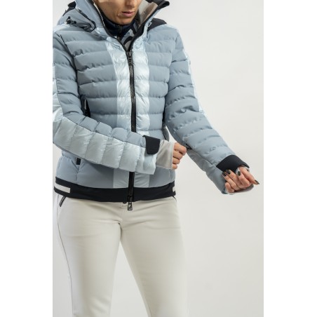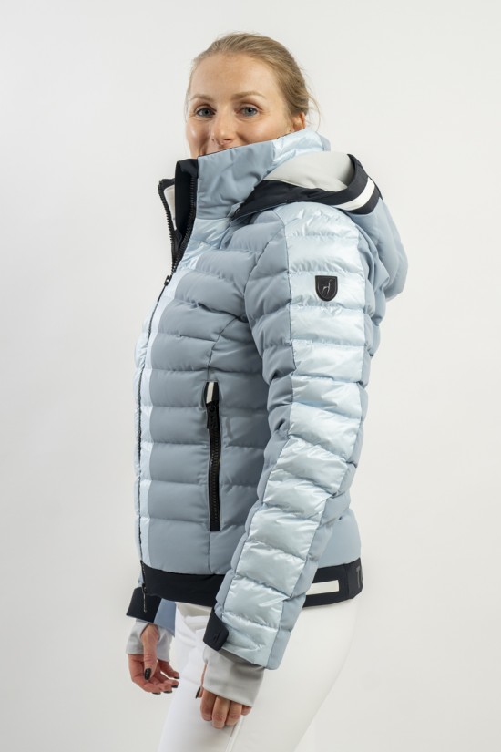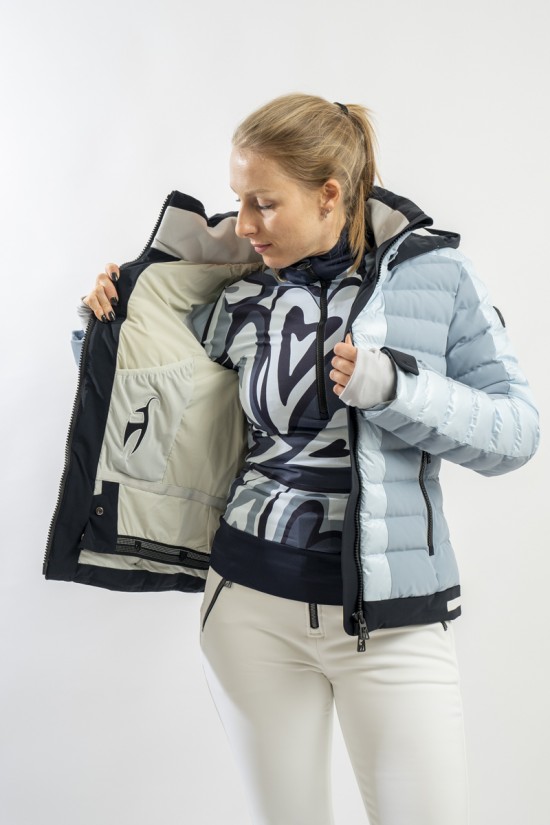 Norma è il risultato dell'incontro di due tessuti che insieme determinano lo stile e la funzionalità di questa giacca sci firmata Toni Sailer. Il tessuto elasticizzato con trapuntatura boudine offre comfort e libertà nei movimenti, le fasce in nylon ripstop luminoso, la impreziosiscono. Impermeabile e traspirante, è dotata di ogni optional antineve. Imbottita manualmente con SORONA® Fiberballs, un'ovatta tecnica che trattiene il calore ed offre un'isolazione ottimale. La linea essenziale e femminile esalta e valorizza la shiluette. Norma soddisfa le esigenze della sciatrice appassionata ed incontra la richiesta di chi non vuole rinunciare a stile ed eleganza sulla neve.