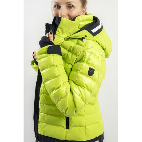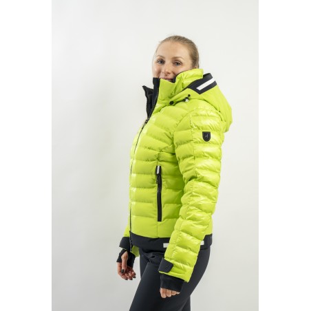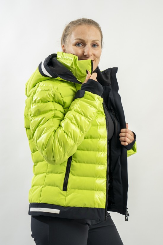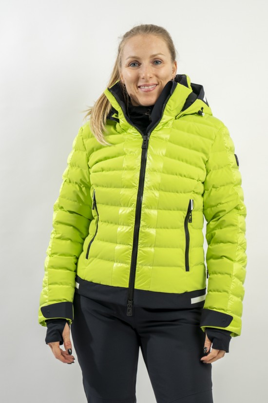Norma è il risultato dell'incontro di due tessuti che insieme determinano lo stile e la funzionalità di questa giacca sci firmata Toni Sailer. Il tessuto elasticizzato con trapuntatura boudine offre comfort e libertà nei movimenti, le fasce in nylon ripstop luminoso, la impreziosiscono. Impermeabile e traspirante, è dotata di ogni optional antineve. Imbottita manualmente con SORONA® Fiberballs, un'ovatta tecnica che trattiene il calore ed offre un'isolazione ottimale. La linea essenziale e femminile esalta e valorizza la shiluette. Norma soddisfa le esigenze della sciatrice appassionata ed incontra la richiesta di chi non vuole rinunciare a stile ed eleganza sulla neve.