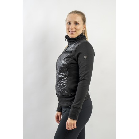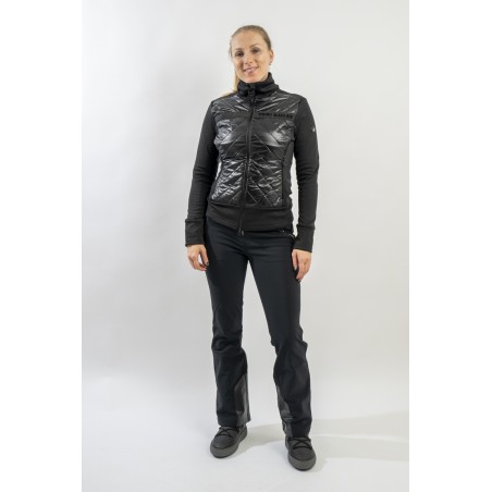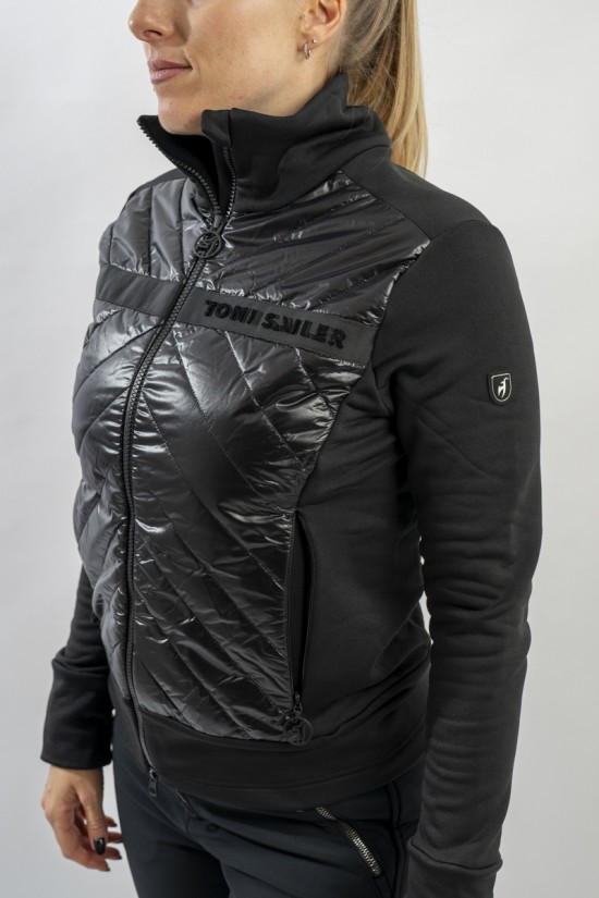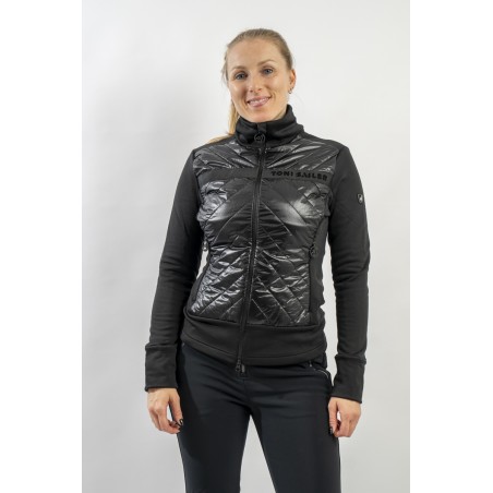 Sottotuta fullzip realizzato in bimateriale per rendere il capo funzionale e pratico in ogni occasione. Il tessuto elasticizzato è abbinato al nylon lucido ripstop imbottito in calda ovatta tecnica sulla parte anteriore. La trapuntatura grafica con la realizzazione del lettering TONI SAILER 3d sul petto, gli donano carattere e partiolarità. Confortevole e traspirante è ideale indossato da solo o come strato isolante aggiuntivo.