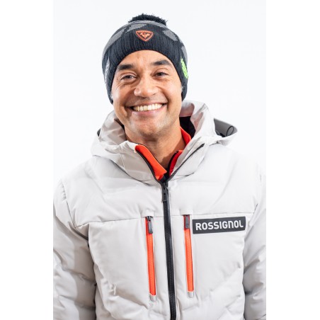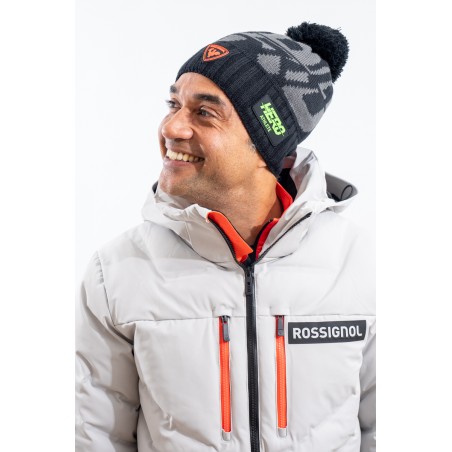 Berretto realizzato in morbito tessuto elasticizzato. All'interno una fodera in pile mantiene più calda la zona della fronte ed orecchie. Arricchito dal pom pon in tessuto e dalla lavorazione a coste larghe alla base. La scritta HERO è realizzata in contrasto di colore su tutta l'ampiezza.