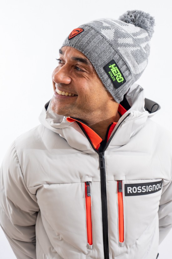 Berretto realizzato in morbito tessuto elasticizzato. All'interno una fodera in pile mantiene più calda la zona della fronte ed orecchie. Arricchito dal pom pon in tessuto e dalla lavorazione a coste larghe alla base. La scritta HERO è realizzata in contrasto di colore su tutta l'ampiezza.