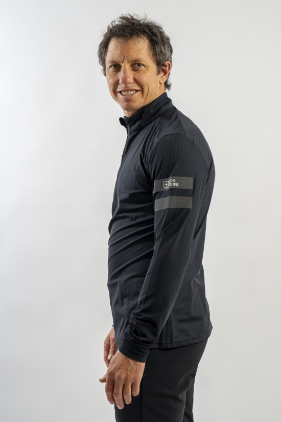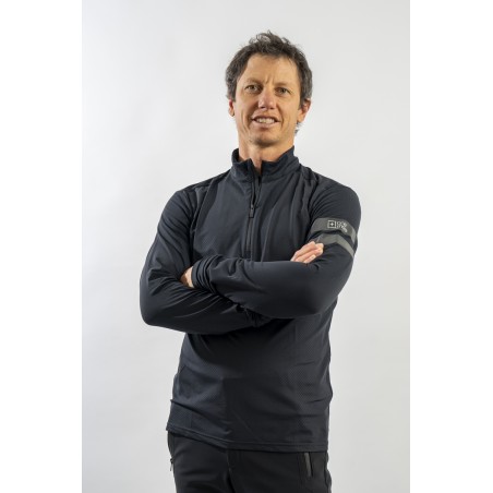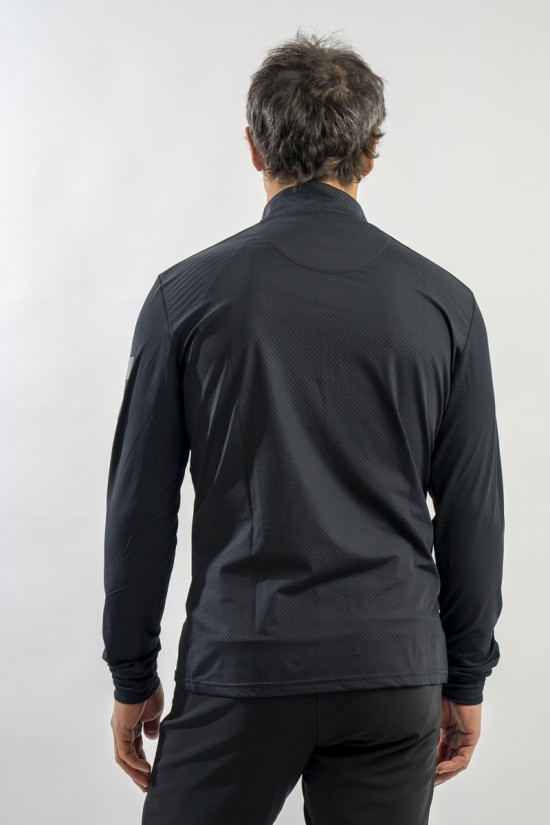Sottotuta mezza zip realizzato in filato rigenerato ECONYL® elasticizzato e traspirante. Caratterizzato dal tessuto Sphera che riproduce delle piccole sfere tono su tono che donano al capo dinamicità ed un particolare effetto tridimensionale. Arricchito di dettagli distintivi del brand è deale per praticare sport all'aperto o come sotto giacca.