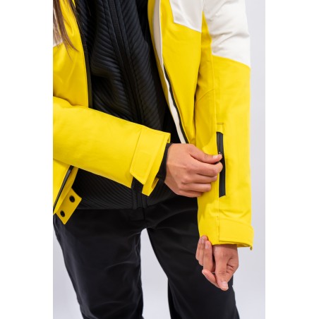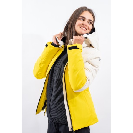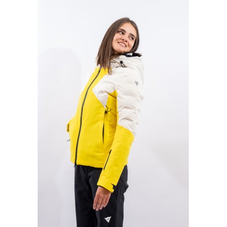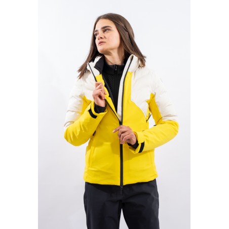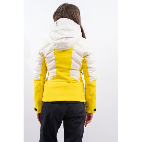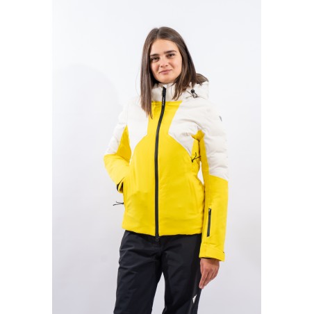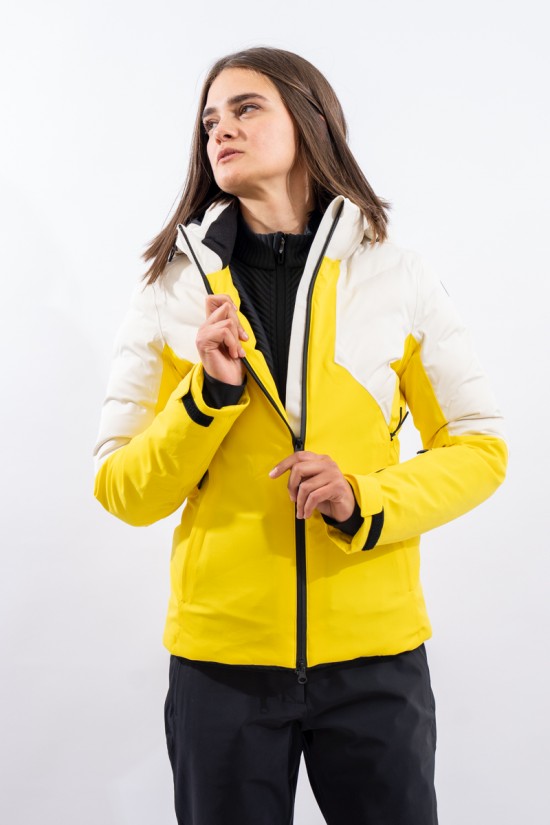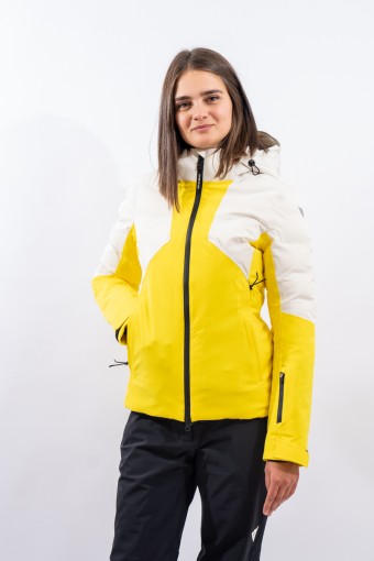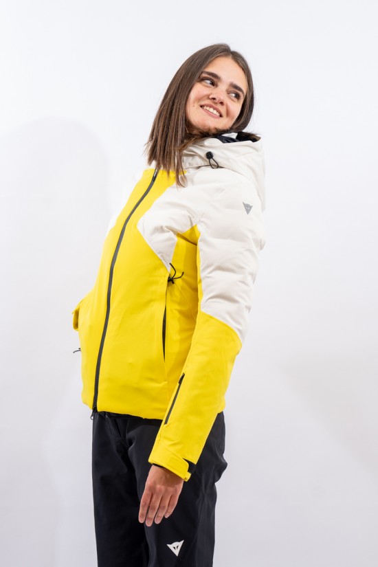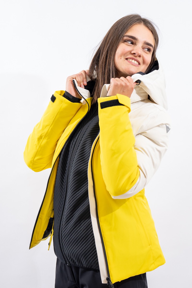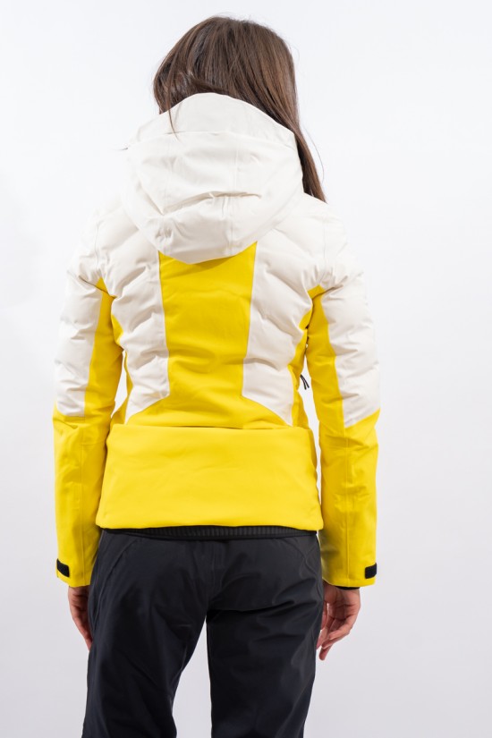 Progettata per lo sci e pensata per la sciatrice esigente, altamente impermeabile e traspirante grazie alla laminazione del tessuto esterno con la membrana interna Aerosense-Dry. Realizzata in tessuto elasticizzato che segue perfettamente il movimento assicurandone la massima libertà. Imbottita in ovatta tecnica REPREVE® una fibra tessile ottenuta dalla plastica riciclata, assicura isolazione e calore ottimali. Il taglio ergonomico permette di adattarsi perfettamente e la trapuntatura grafica con boudine nastrati, abbinata al tessuto liscio, donano carattere e dinamicità al capo. Confortevole e funzionale, è dotata di ogni optional anti vento ed anti neve, ed il cappuccio è staccabile, per adattarla perfettamente ad ogni condizione.