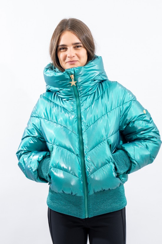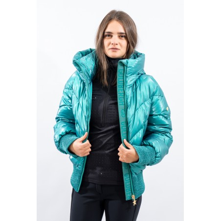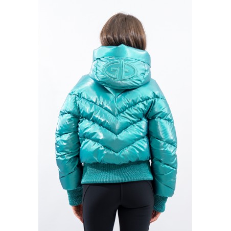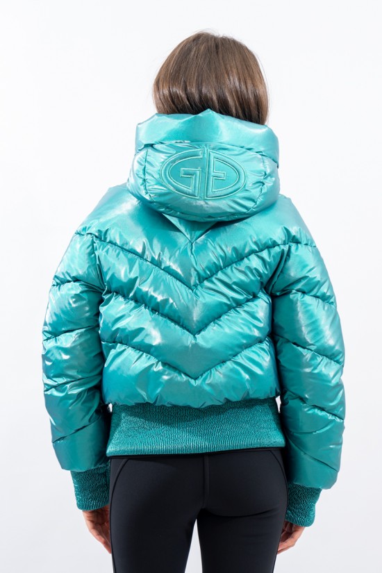Imbottita in piuma d'oca e caratterizzata dal deisgn "puffy", giovane e contemporaneo. Il tessuto esterno, un morbido nylon satinato effetto metallizzato, è arricchito dalla trapuntatura a boudine diagonale, per un gioco di luce e di volumi unico ed originale. Bomberino valorizzato dal fascione al fondo in tessuto elasticizzato goffrato per una perfetta aderenza e maggior protezione agli agenti atmosferici. Le maniche imbottite sono complete di polsini anti vento e bordatura elastica groffata per enfatizzare l'effetto desiderato. Versatile e contemporanea è il capo ideale sulla neve e non solo.