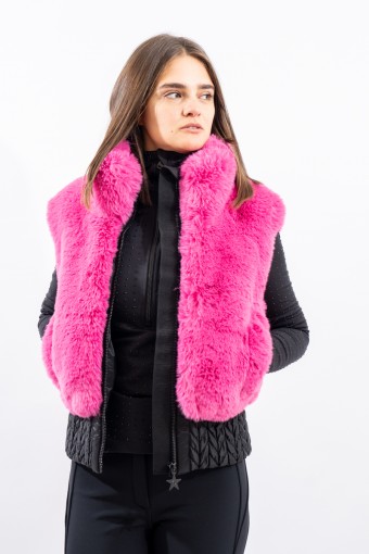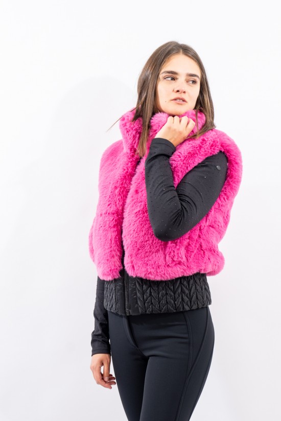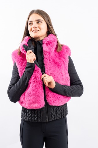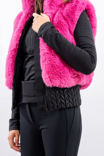 Chic ed elegante il gilet proposto da Goldbergh e realizzato in ecofur effetto pelliccia. Il collo alto, morbido ed avvolgente, dona una fantastica sensazione di calore. La fascia in nylon trapuntato sul fondo è elastica garantendo una perfetta aderenza per una miglior protezione all'aria. Pratico è dotato di due comode tasche laterali foderate. Lina è il capo ideale per dare un tocco prezioso e sofisticato al tuo look sulla neve.