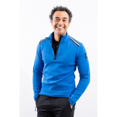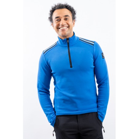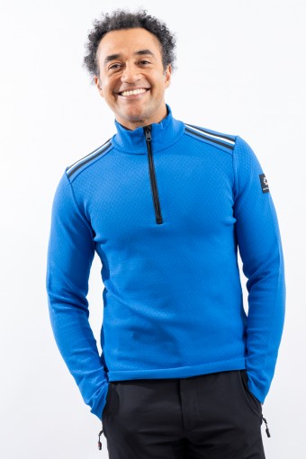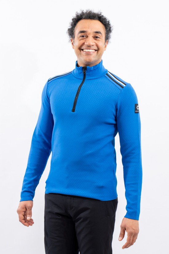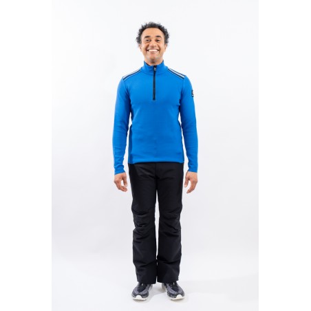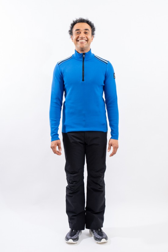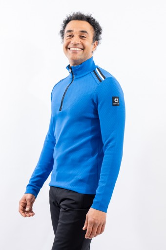 Sottotuta mezza zip in tessuto DH-Tech 400 high performance, per un capo altamente isolante e traspirante. Prodotto realizzato con un filato a base di poliuretano estruso caratterizzato dal un filo cavo internamente. Ad asciugatura rapida è anti-odore e antibatterico. Questa inedita soluzione rigorosamente Made in Italy rende il prodotto compatto ed elastico per un comfort ed una vestibilità senza eguali.