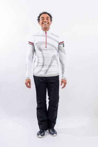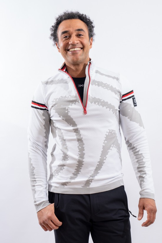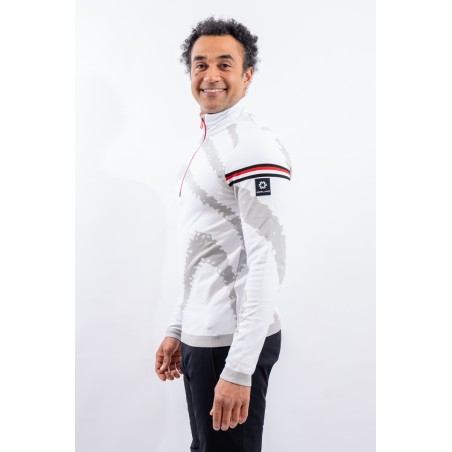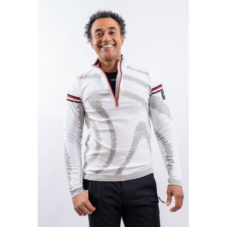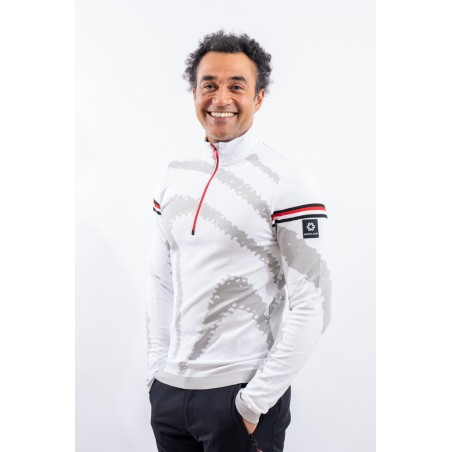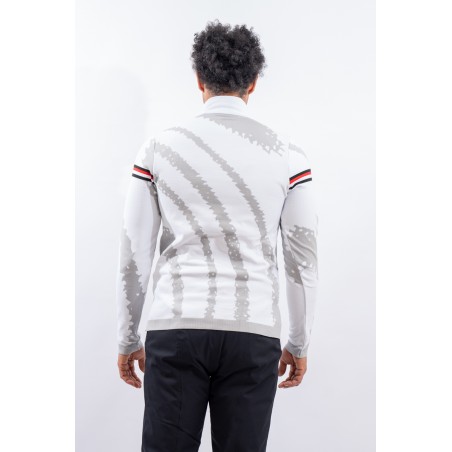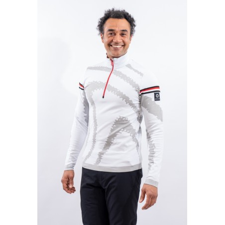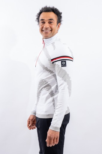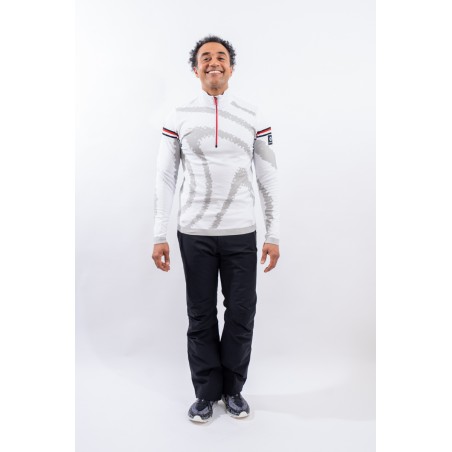 Sottotuta mezza zip in tessuto DH-Tech 400 high performance, per un capo altamente isolante e traspirante. Prodotto realizzato con un filato a base di poliuretano estruso caratterizzato dal un filo cavo internamente. Ad asciugatura rapida è anti-odore e antibatterico. Questa inedita soluzione rigorosamente Made in Italy rende il prodotto compatto ed elastico per un comfort ed una vestibilità senza eguali.
