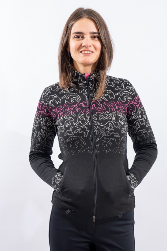 Sottotuta full zip in tessuto DH-Tech 400 high performance, per un capo altamente isolante e traspirante. Prodotto realizzato con un filato a base di poliuretano estruso caratterizzato dal un filo cavo internamente. Ad asciugatura rapida è anti-odore e antibatterico. Questa inedita soluzione rigorosamente Made in Italy rende il prodotto compatto ed elastico per un comfort ed una vestibilità senza eguali.
