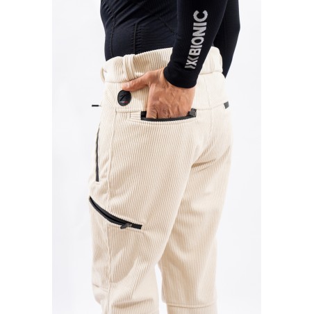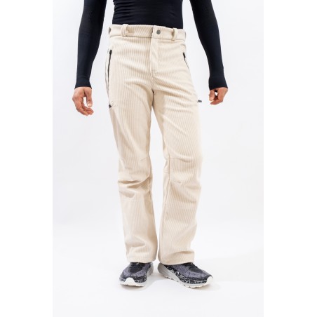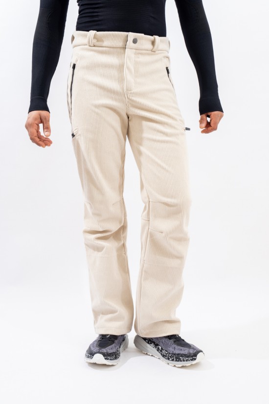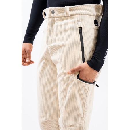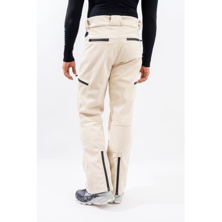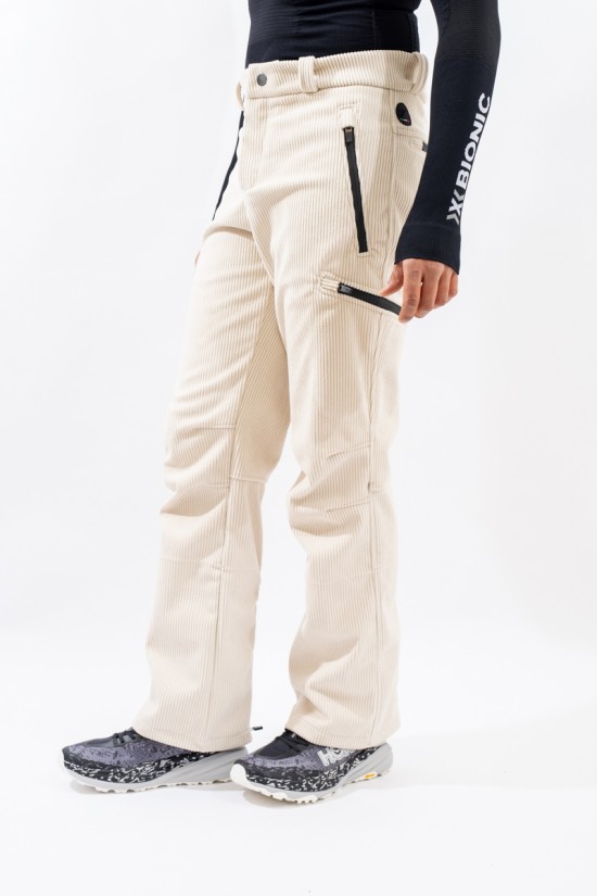 Pantalone sci realizzato in tessuto elastico, idrorepellente effetto velluto millerighe. Grintoso e moderno è caratterizzato dalle profonde zip in contrasto di colore sulla coscia, ai lati e dietro. Il tessuto esterno laminato con membrana Tek series garantisce impermeabilità, resistenza al vento ed elevata traspirabilità. Confortevole e caldo è perfetto per affrontare le piste da sci con stile e sicurezza.