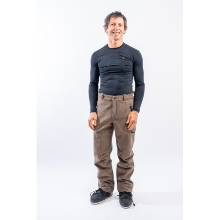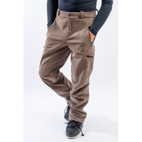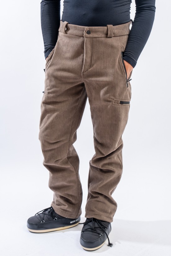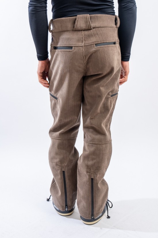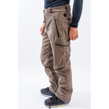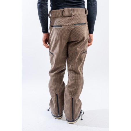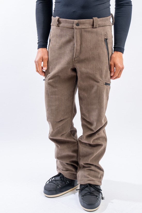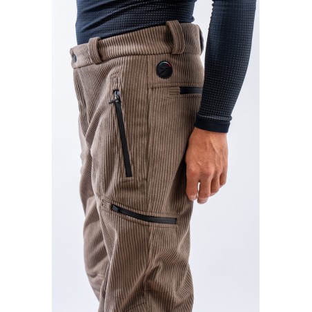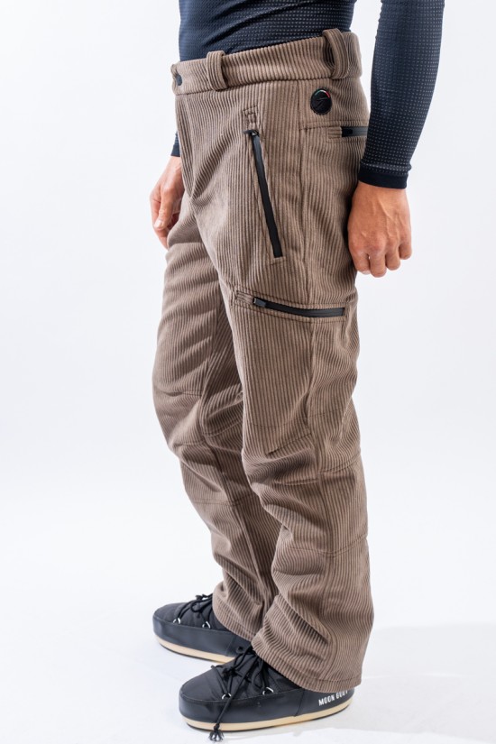 Pantalone sci realizzato in tessuto elastico, idrorepellente effetto velluto millerighe. Grintoso e moderno è caratterizzato dalle profonde zip in contrasto di colore sulla coscia, ai lati e dietro. Il tessuto esterno laminato con membrana Tek series garantisce impermeabilità, resistenza al vento ed elevata traspirabilità. Confortevole e caldo è perfetto per affrontare le piste da sci con stile e sicurezza.