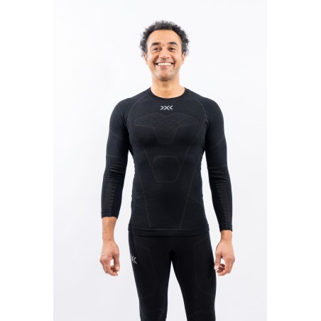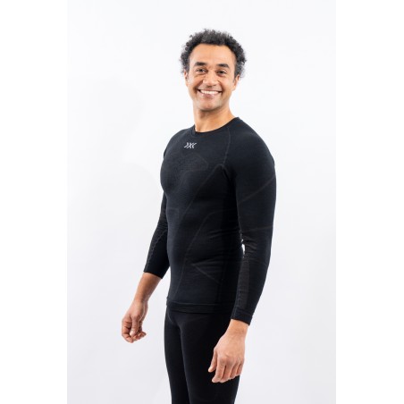 L'intimo tecnico sviluppato in Svizzera e prodotto in Italia definito dalla costruzione tridimensionale Bionic Sphere System. Realizzato in lana utilizzando le migliori tecnologie e 100% museling-free. L'impiego di un filato pregiato a base di lana Merino mercerizzata, abbinato alla rivoluzionaria costruzione 3D, garantisce standard di isolazione e traspirabilità elevatissimi. Il tessuto è morbido, piacevole al tatto e la struttura a media compressione garantisce comfort e vestibilità ideali. La lana, termoregolatore naturale, è perfettamente indicata tutto l'anno. Fresco quando è caldo, caldo quando è freddo.
