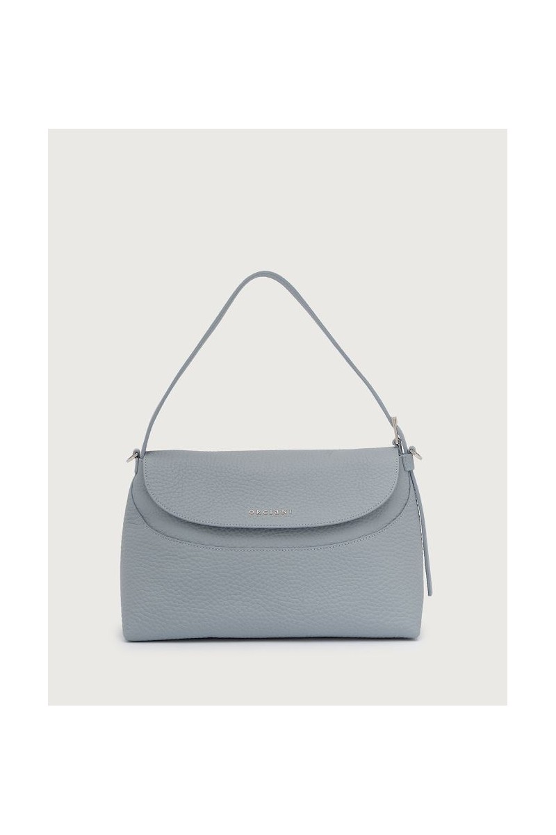 Dalle linee sinuose e morbide si presenta la nuova borsa Nana firmata Orciani. Realizzata in morbidissima pelle martellata made in Italy. Pratica e versatile da portare a spalla o a tracolla. Chiusura principale con patta e bottoni automatici, interno foderato completamente in pelle scamosciata in tono con ampia tasca chiusa da zip. Impreziosita dal raffinato logo lettering Orciani in palladio applicato sul fronte. Perfetta da indossare nel quotidiano, ma anche per completare qualche outifit per delle serate speciali.