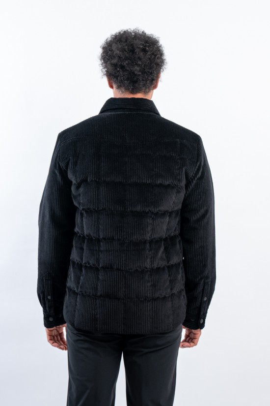 Giacca imbottita realizzata in velluto a costine larghe. Design classico, taglio camicia rivsto nei materiali e nella vestibilità. L'imbottituta e la trapuntatura a boudine classico arricchita dalle tasche a soffietto applicate sul petto rendono il capo unico nella sua semplicità. Imbottito in pregiato piumino 90/10 è calda, morbida e leggera. Immancabili il logo cucito sulla manica sinistra e i bottoni loggati.