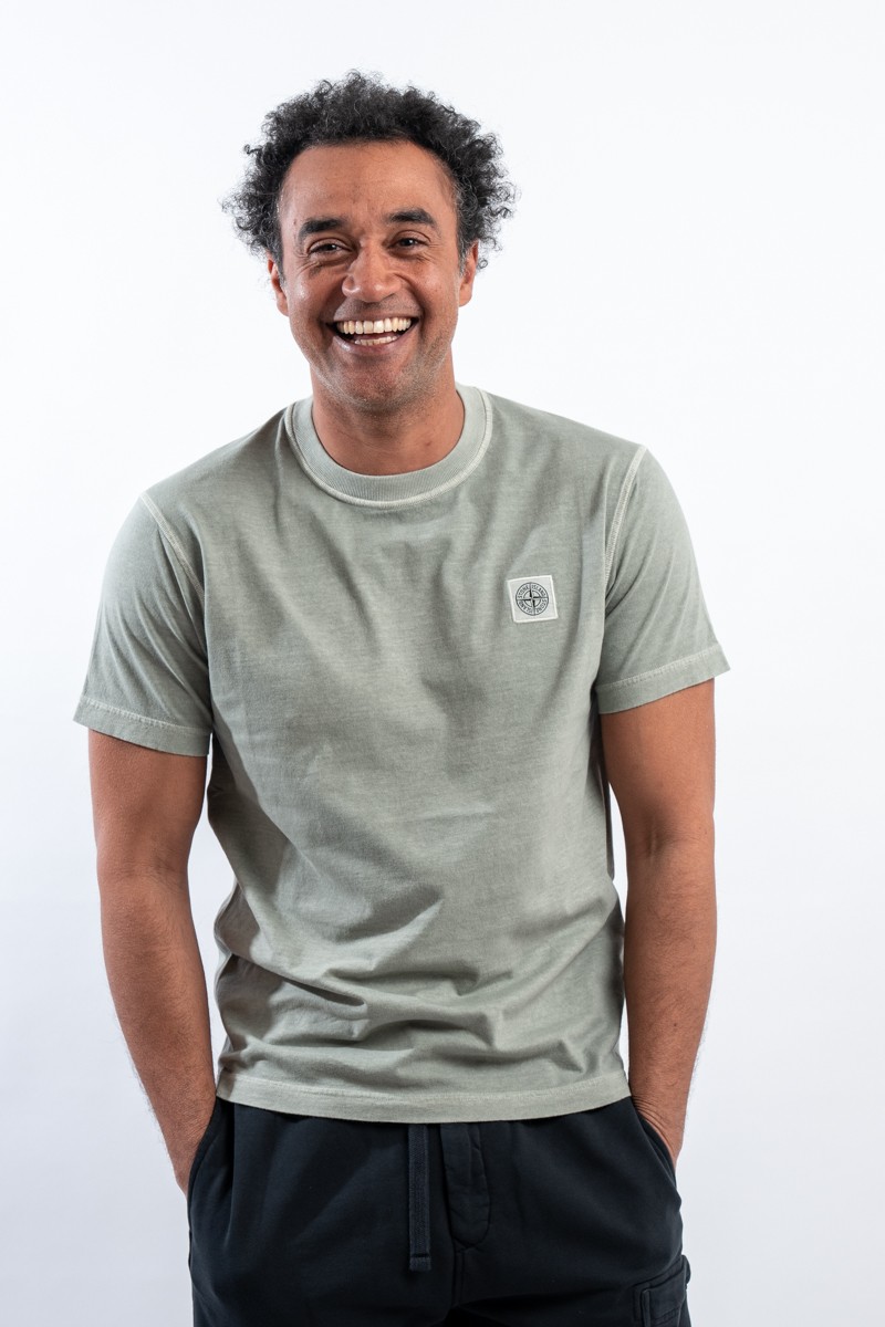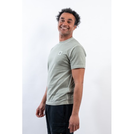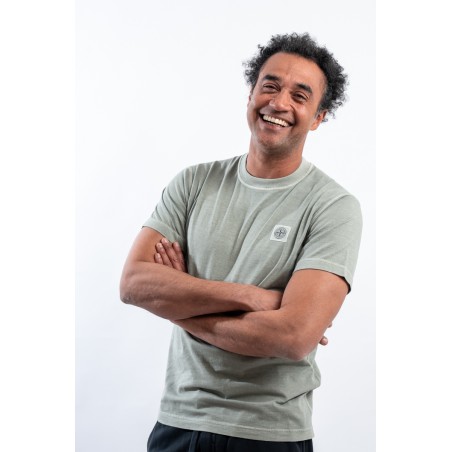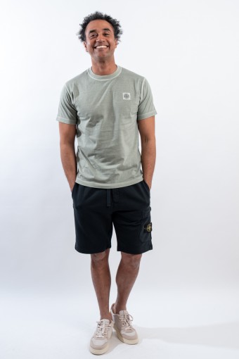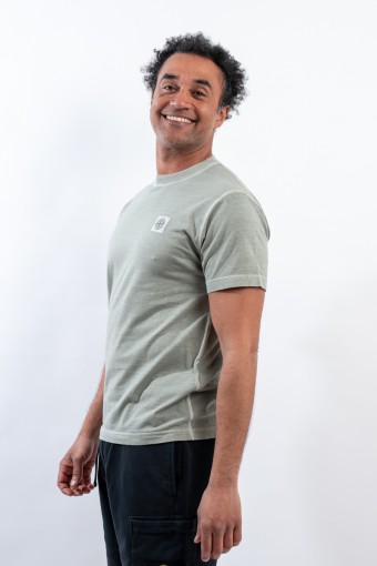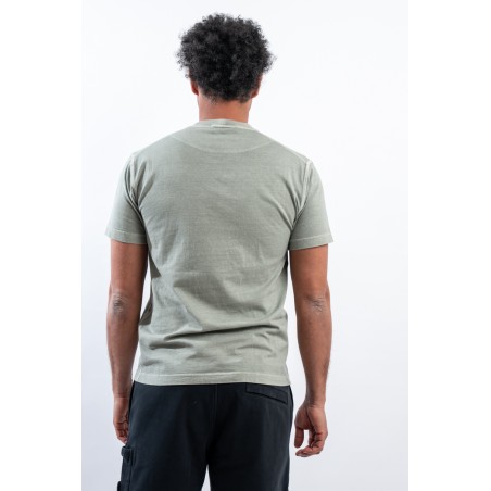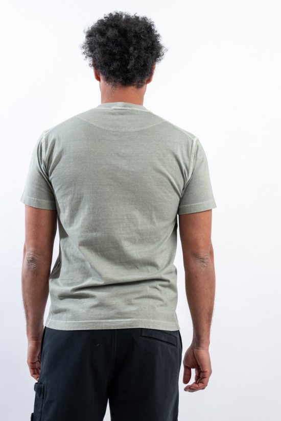 T-shirt realizzata in jersey di cotone biologico. Tinta in capo e trattata con effetto "FISSATO", per conferire al capo quell'effetto tridimensionale unico ed identificativo del brand. Rifinita con cuciture overlock sullo scollo e sulle maniche. Completa il look l'iconico patch Compass di Stone Island.