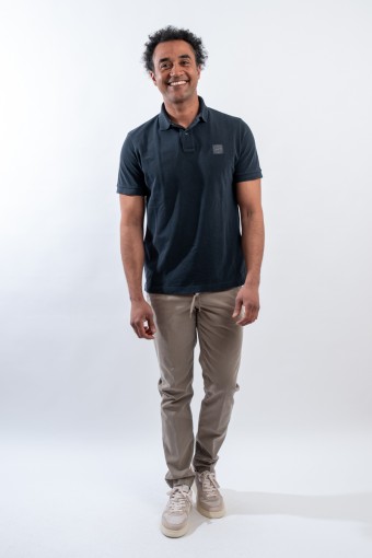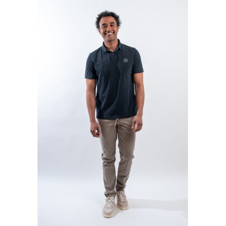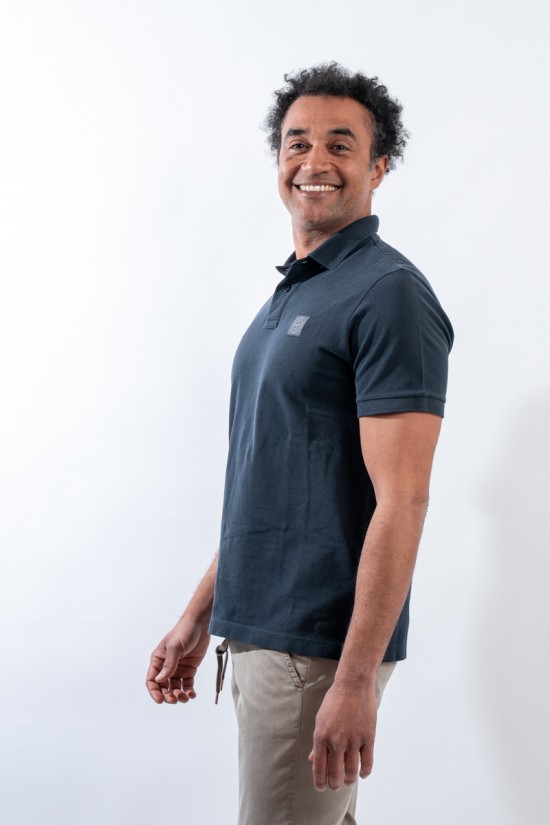 Polo a manica corta con colletto a costine e due bottoni di chiusura. Realizzata in piqué di cotone sovratintocon pigmenti. Questa particolare tecnica di tintura permette di ottenere un colore intenso dall'effetto cangiante. Completa il look il logo istituzionale Compass cucito sul petto.