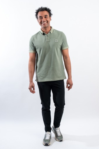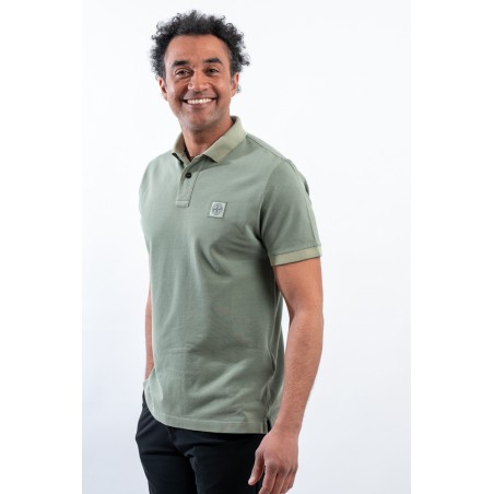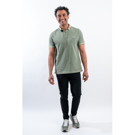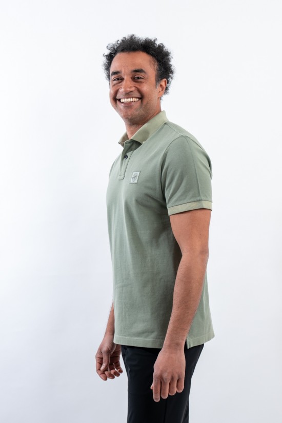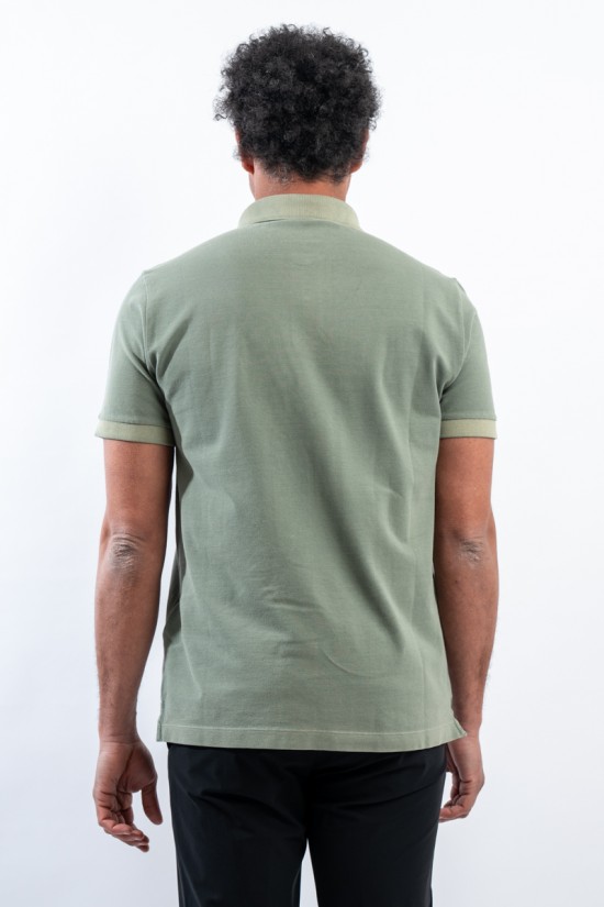 Polo a manica corta con colletto a costine e due bottoni di chiusura. Realizzata in piqué di cotone sovratintocon pigmenti. Questa particolare tecnica di tintura permette di ottenere un colore intenso dall'effetto cangiante. Completa il look il logo istituzionale Compass cucito sul petto.