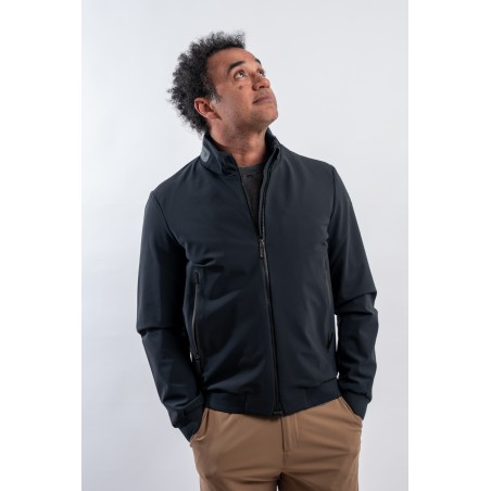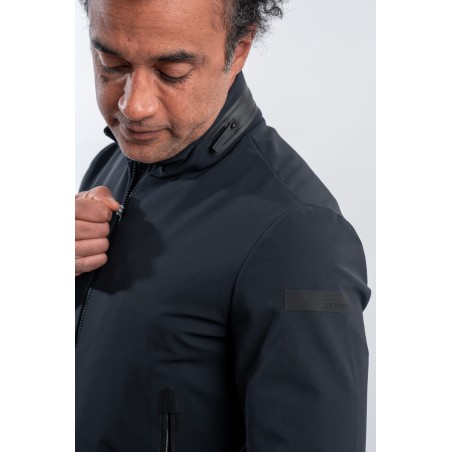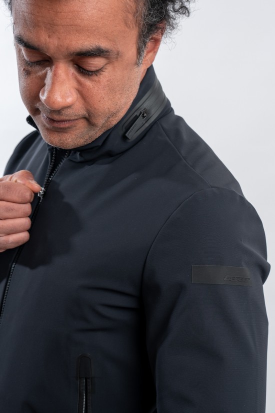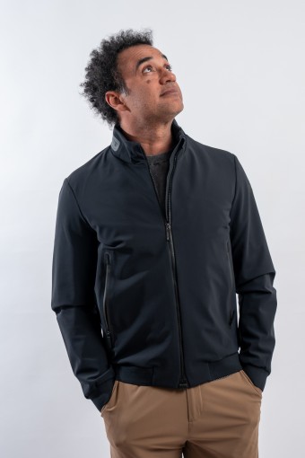 Giubbotto compatto e funzionale arricchito dall'utilizzo di materiali innovativi e performanti. Realizzato nell'esclusivo SURFLEX®, un tessuto tecnico elasticizzato, leggero e dall'aspetto superopaco, morbido e versatile. Grazie a questo innovativo tessuto il capo è easy care, no iron e superstretch. Le termonastrature e la zip integrale a chiusura magnetica, ridefiniscono un design dall'aspetto essenziale donando al capo un carattere deciso e riconoscibile. Non si fa trovare impreparato ai repentini cambiamenti climatici grazie al cappuccio ripiegato all'interno del colletto. Look contemporaneo e senza tempo, ideale nelle mezze stagioni.