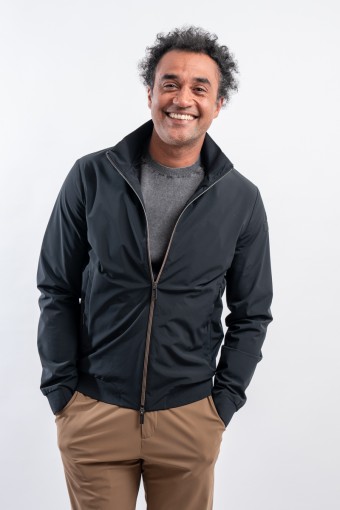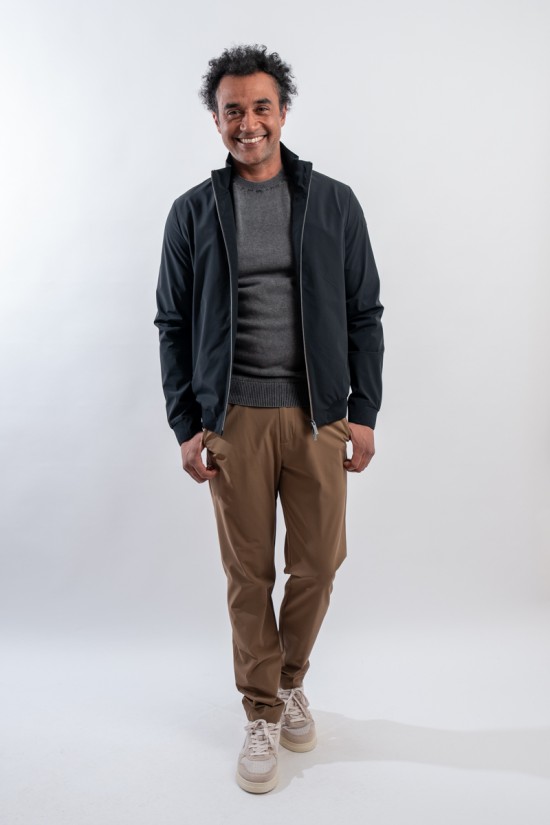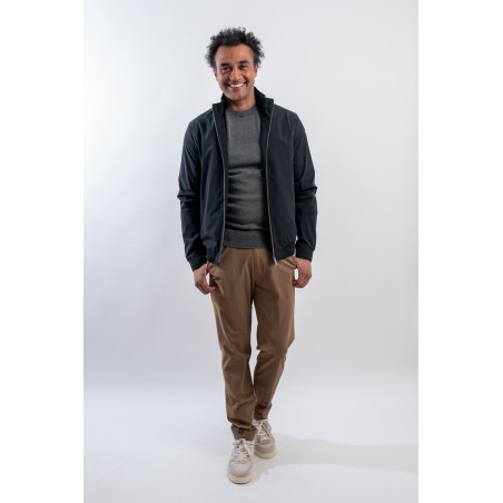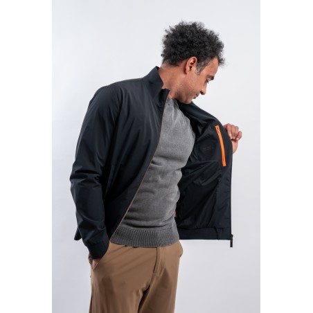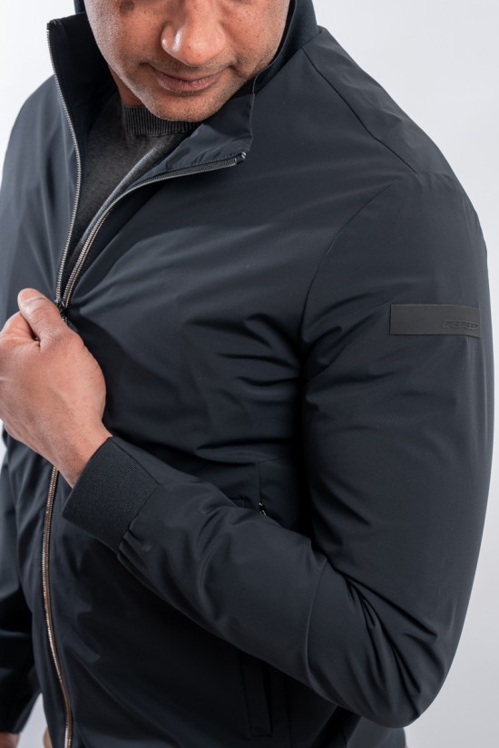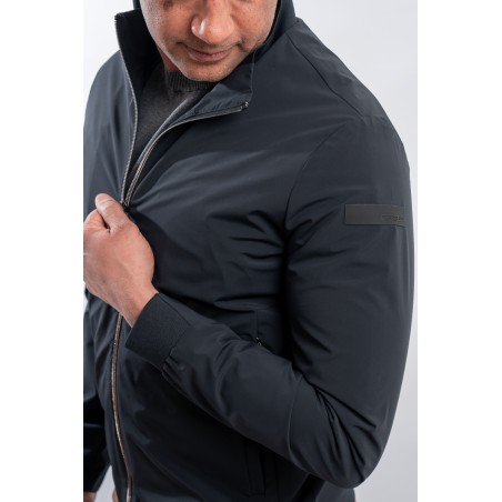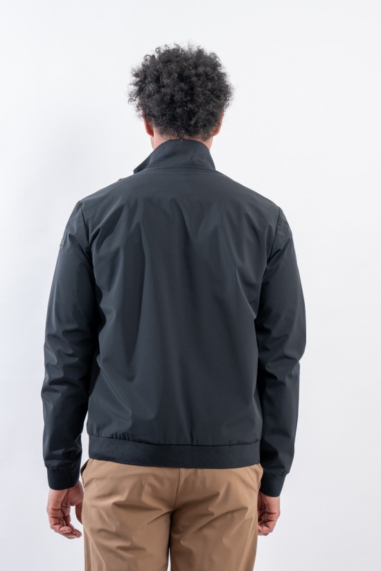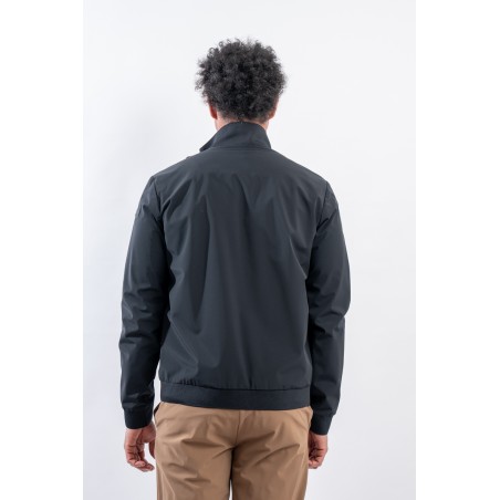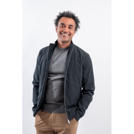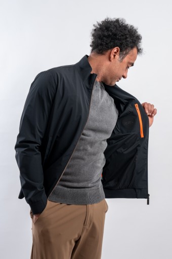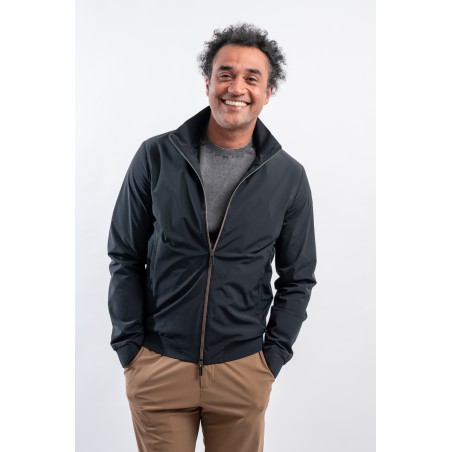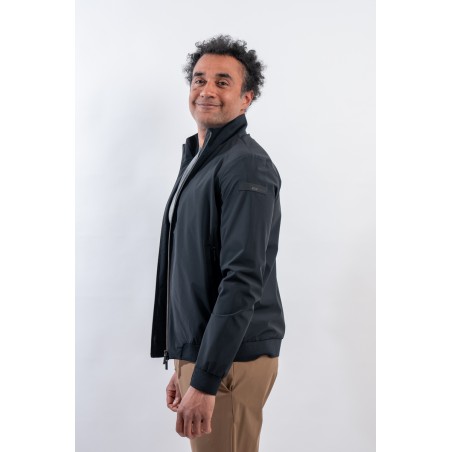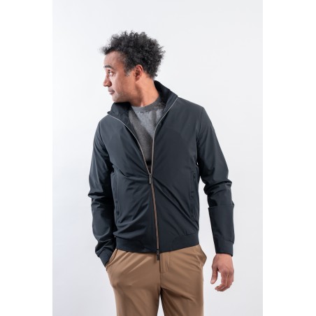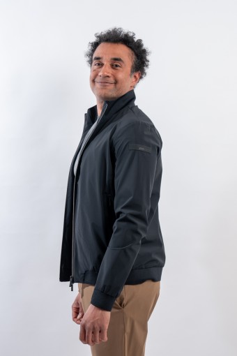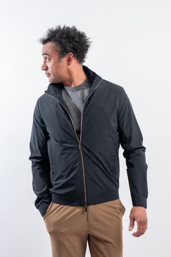 Giacca dal taglio bomber, dal design essenziale e contemporanea nel materiale. Realizzata in SURFLEX® un tessuto tecnico a membrana, leggero, traspirante ed impermeabile. Morbido, compatto e versatile si contraddistingue per il look superopaco e l'elasticità che rende il capo estremamente confortevole. Caratterizzata dalle doppie tasche laterali, due con classica chiusura zip e due, più esterne chiude da zip invisibile. Finiture a costine elasticizzate su fonso, polsini e colletto. Pratica è dotata di un'ulteriore tasca interna. Casual e senza tempo è perfetta per completare ogni outfit nelle mezze stagioni.
