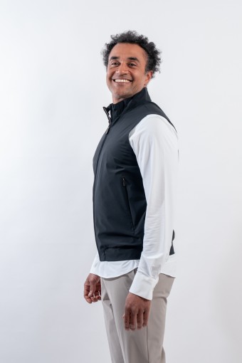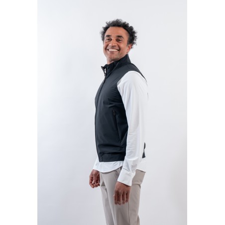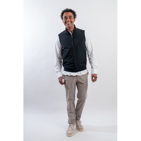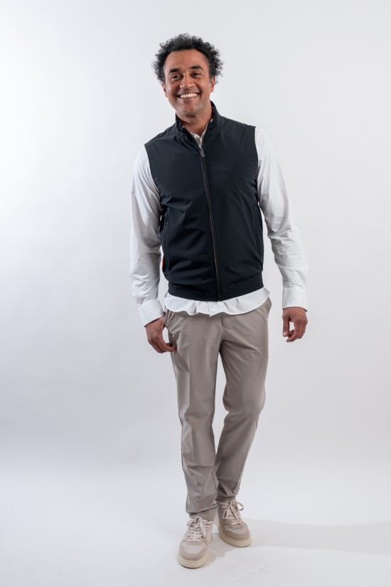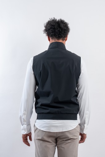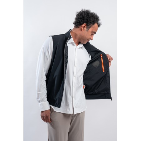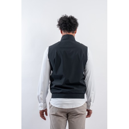 Gilet dal taglio essenziale, leggero e raffinato nella costruzione. Il tessuto esterno a membrana è elasticizzato, aderendo perfettamente al corpo. Impermeabile e traspirante. Dotato di due comode tasche laterali chiuse da zip invisibili, colletto in piedi, per un comfort ed una protezione maggiori. Completano il look l'iconico taschino interno caratterizzato dal doppio filetto fluo e dal tag a cuore "Made with love, designed in Tuscany".