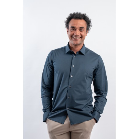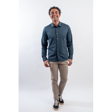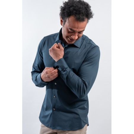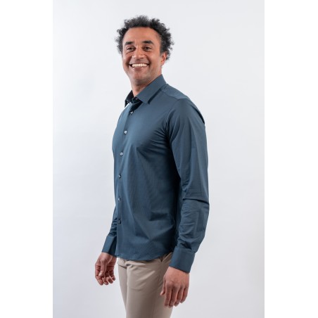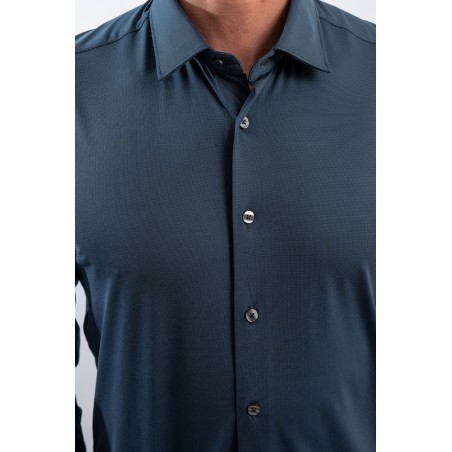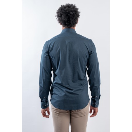 Camicia dal taglio classico caratterizzata dalla finissima lavorazione jaquard dell'esclusivo tessuto Oxford. Leggera, fresca ed estremamente confortevole è perfetta per chi non vuole rinunciare ad un tocco di classica eleganza anche nelle giornate più calde. Estremamente confortevole grazie all'elevata elasticità del tessuto. Rifinita da immancabili dettagli di stile come l'abbottunatura alla francese in madreperla ed il taglio arrotondato.
